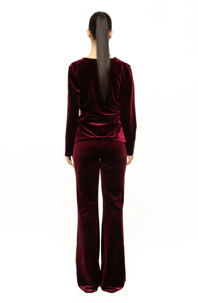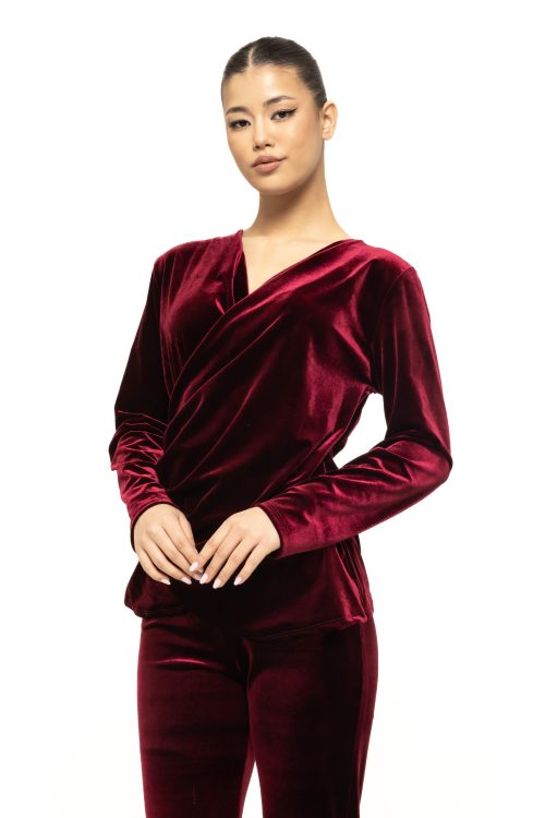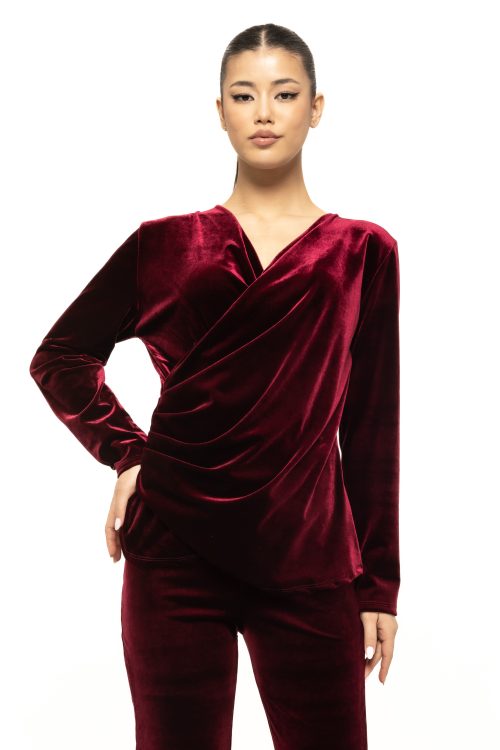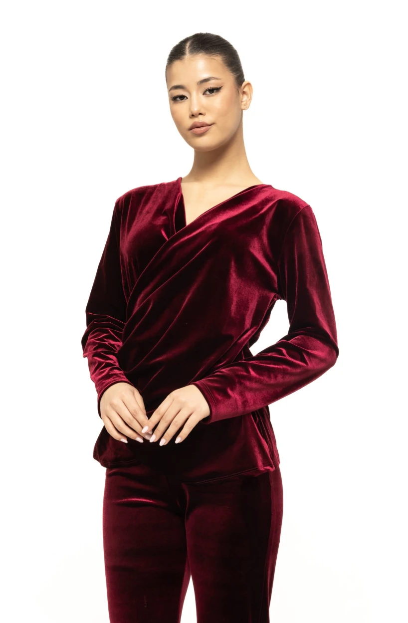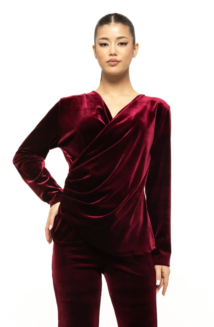 Materialul din catifea este unul dintre elementele centrale care definesc frumusețea bluzei Rosalia. Catifeaua este asociată dintotdeauna cu eleganța și luxul, iar textura sa fină și ușor lucioasă conferă un aspect prețios. Reflexiile discrete ale materialului se schimbă odată cu lumina, ceea ce face bluza deosebit de spectaculoasă la evenimente de seară sau în încăperi cu lumină caldă. Este un articol care arată impecabil în fotografii și creează instant acel efect „glam” discret, dar vizibil.