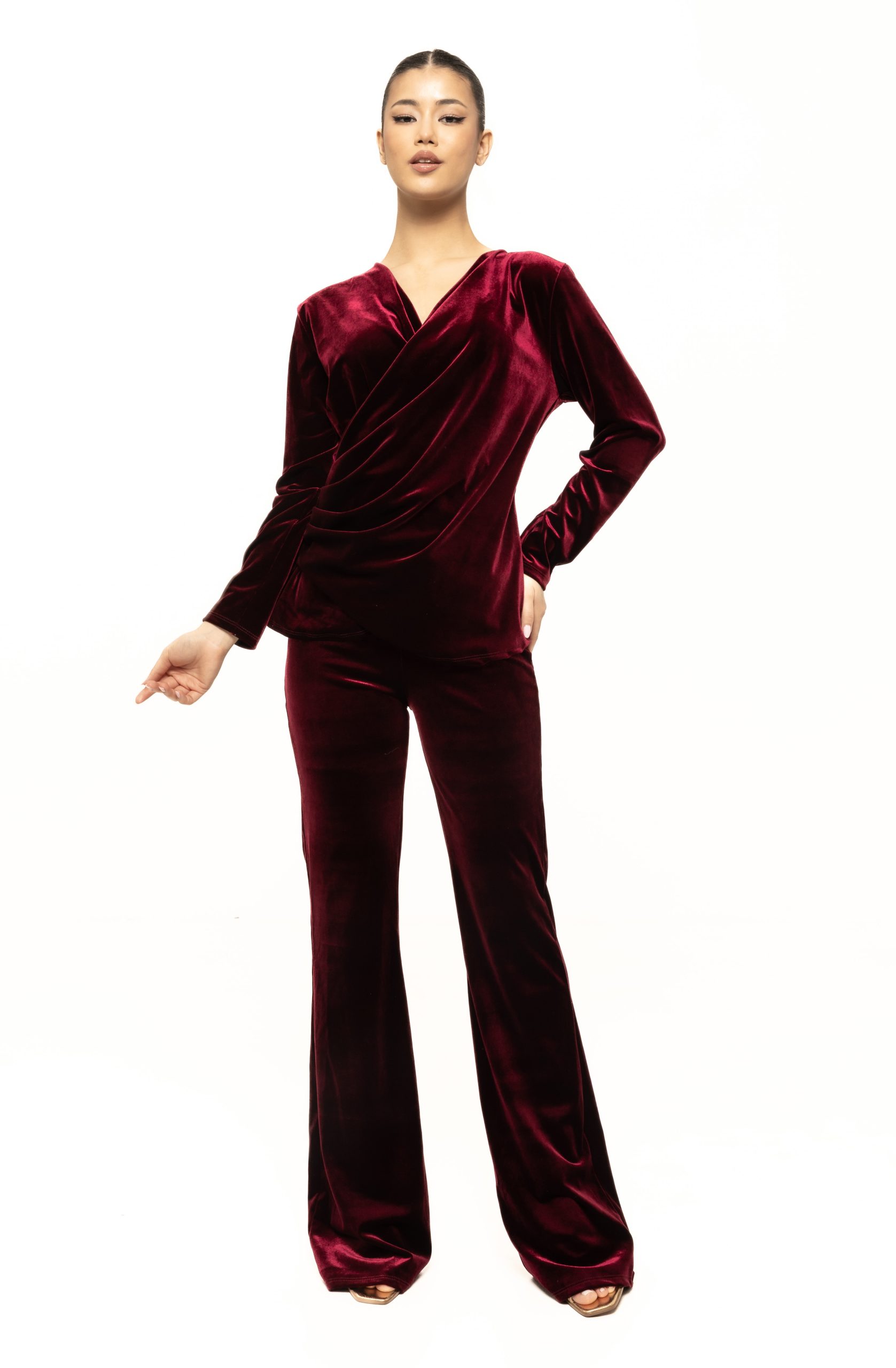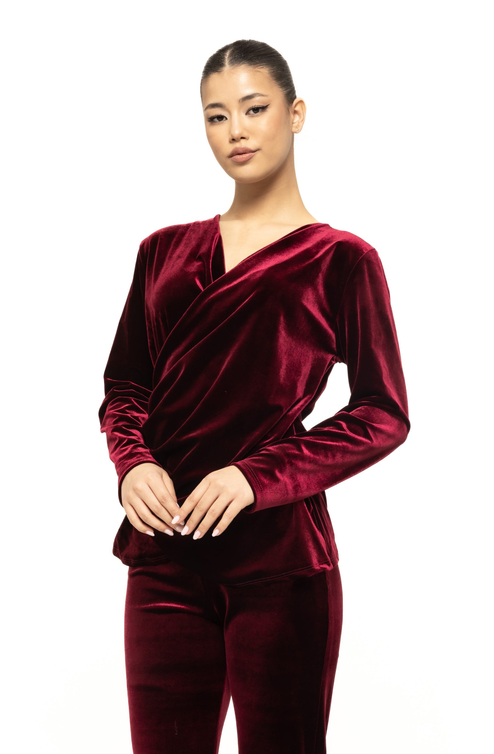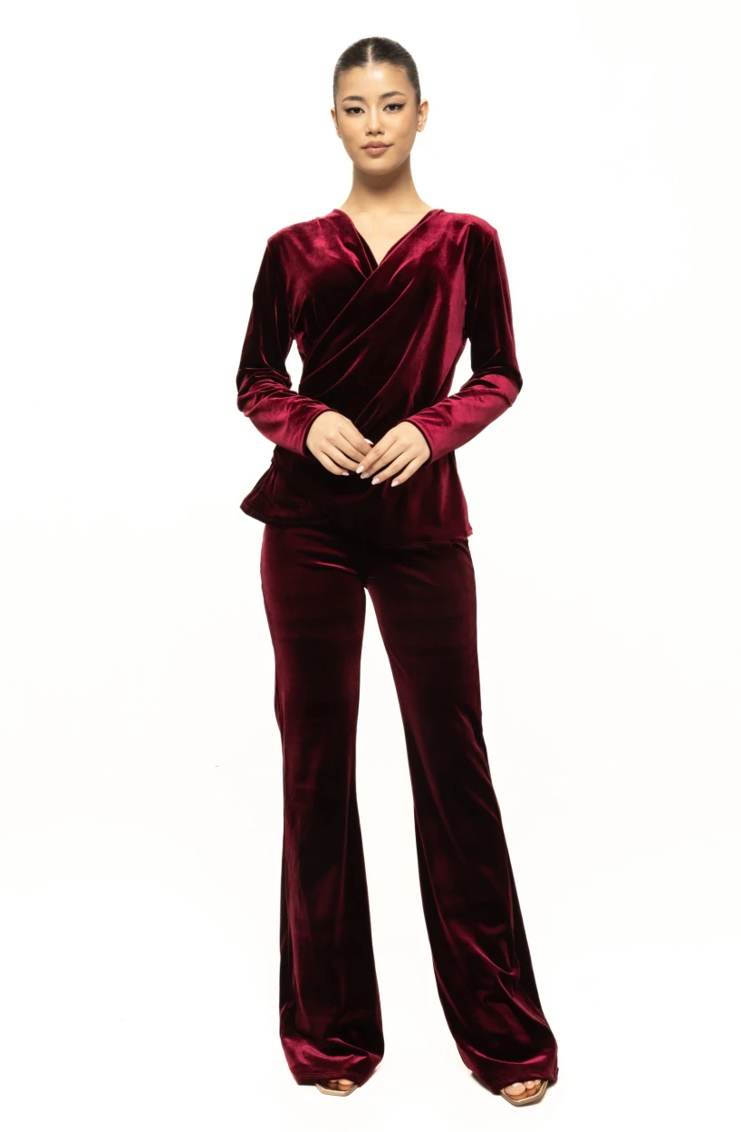 Bluza petrecută din catifea Rosalia este o piesă vestimentară rafinată, modernă și feminină, creată pentru femeile care vor să adauge un strop de eleganță strălucitoare în garderoba lor. Realizată dintr-o catifea luxuriantă, moale și plăcută la atingere, bluza Rosalia reușește să îmbine perfect confortul cu rafinamentul, transformând orice ținută într-una specială. Croiala în stil petrecut (wrap) pune în valoare linia bustului și talia, oferind un efect armonios și feminin, potrivit pentru diverse tipuri de siluetă. Această piesă este ideală pentru sezonul rece, pentru evenimente speciale, dar și pentru outfituri moderne de zi cu zi în care vrei să arăți impecabil.