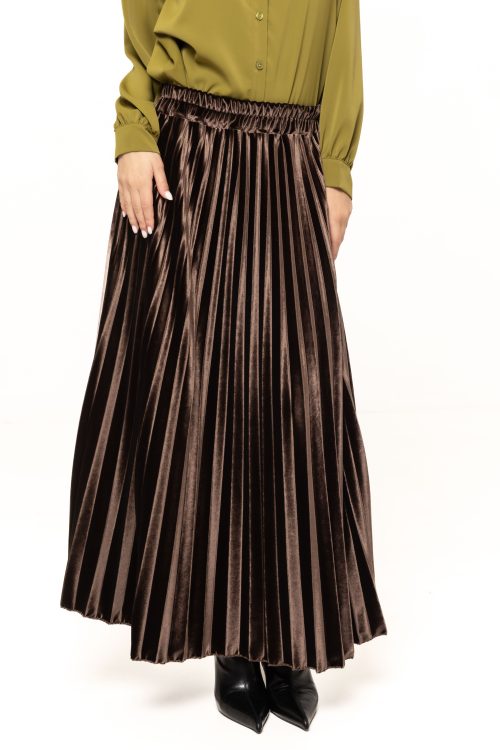 Fusta plisată din catifea Criss este piesa vestimentară care îmbină eleganța clasică cu rafinamentul modern, fiind ideală pentru femeile care doresc să adauge un plus de stil și feminitate garderobei lor. Realizată din catifea moale, cu o textură fină și luciu subtil, fusta Criss este alegerea perfectă pentru ocazii speciale, dar și pentru ținute casual-chic, oferind un efect vizual sofisticat și un confort deosebit la purtare. Plisările precise și croiala atent lucrată transformă această fustă într-o piesă versatilă, care poate fi integrată cu ușurință în diverse outfituri.
