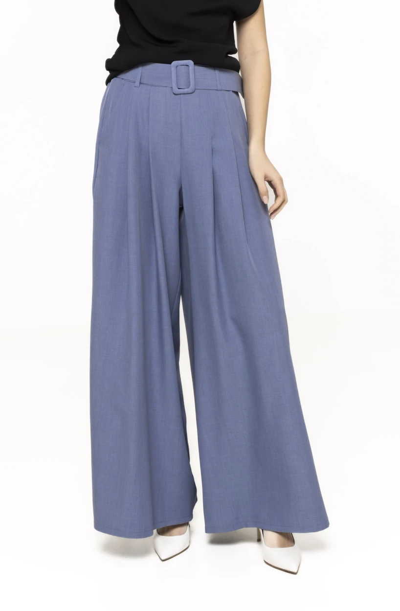 Pantalonul evazat cu curea în talie Holly se remarcă prin: