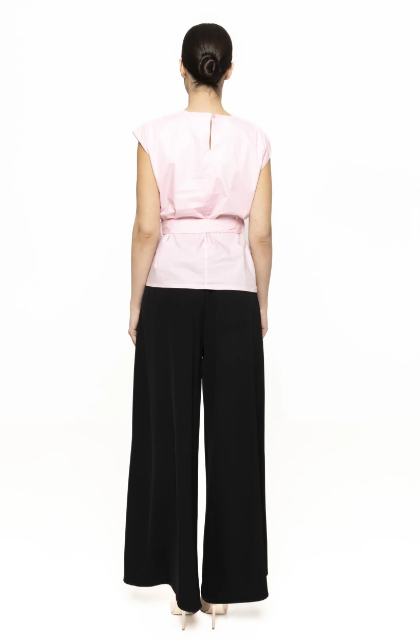 Croiala evazată tip palazzo este apreciată pentru efectul său de alungire optică a picioarelor. Pantalonul Alesia urmărește linia corpului în partea superioară și se deschide amplu spre tiv, creând un echilibru armonios al proporțiilor. Această linie fluidă oferă un plus de grație fiecărui pas și contribuie la o siluetă elegantă și feminină.