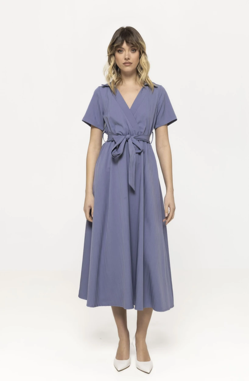 Disponibilă într-o gamă variată de culori, de la nuanțe neutre și clasice până la tonuri moderne, rochia cu mânecă scurtă și cordon în talie Sorina se adaptează cu ușurință stilului tău personal.