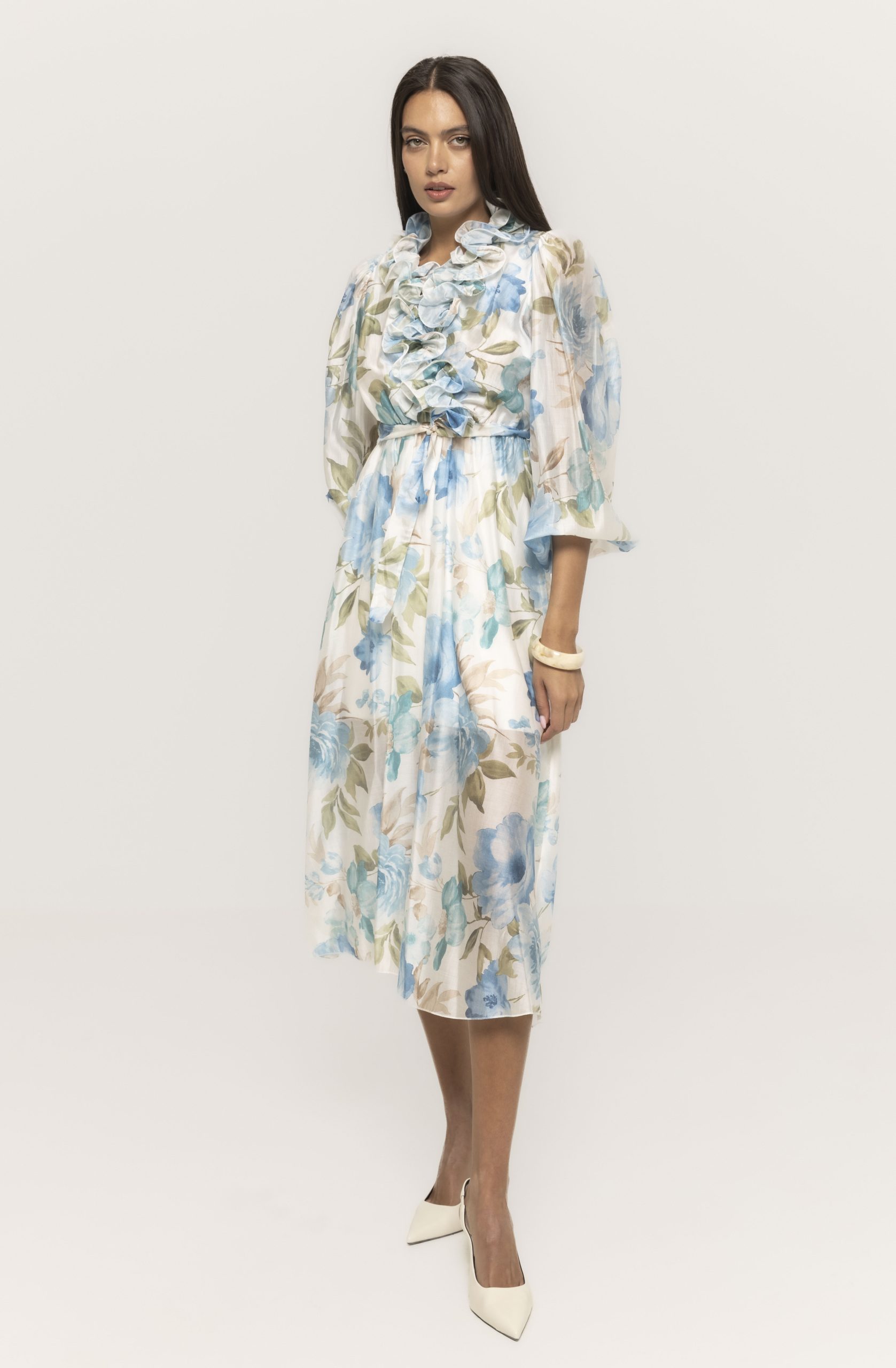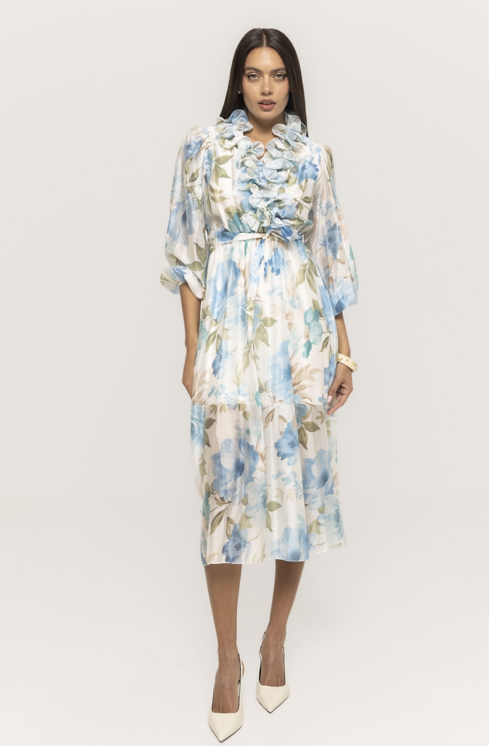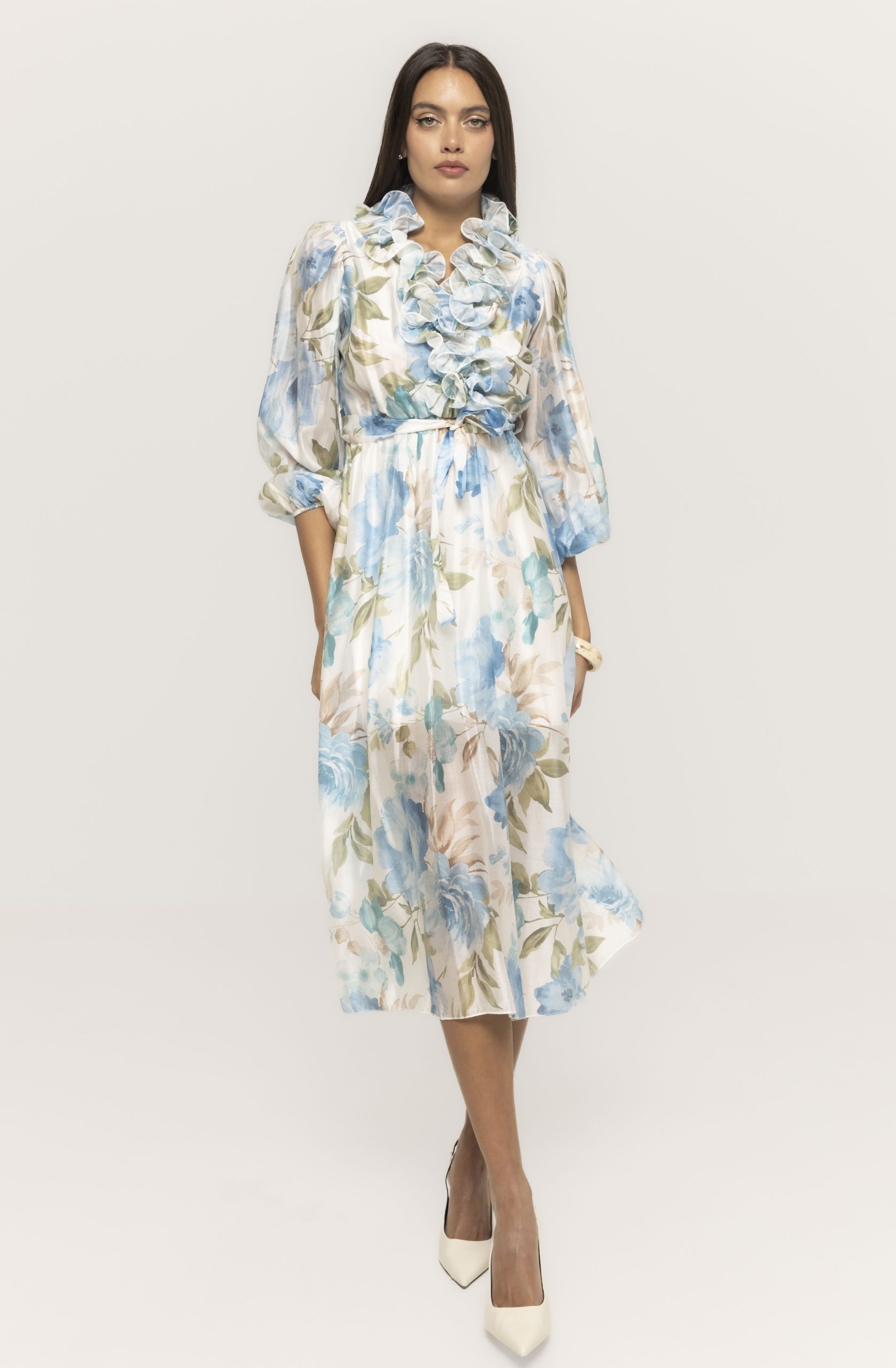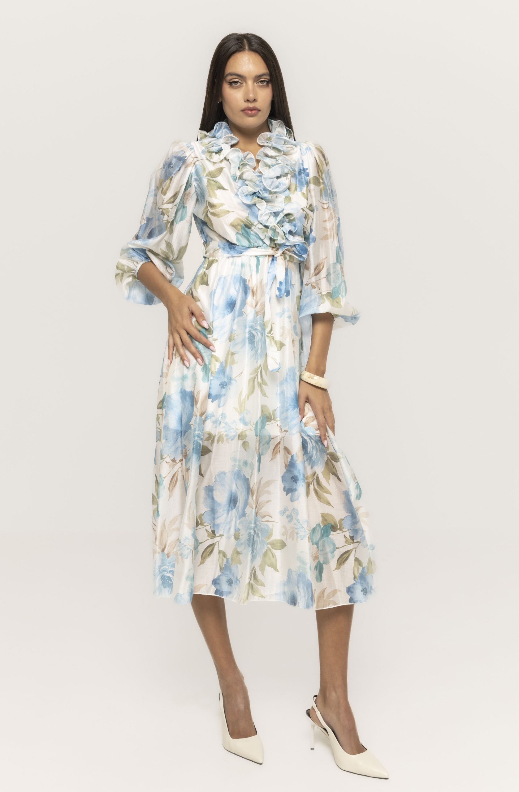 Croiala sa este gândită pentru a avantaja multiple tipuri de siluetă, punând în valoare formele feminine fără a compromite confortul. Rochia lungă cu imprimeu floral Amy urmărește delicat linia corpului și oferă un echilibru perfect între lejeritate și structură, ceea ce o face potrivită atât pentru femeile care preferă ținute romantice, cât și pentru cele care caută piese elegante cu impact vizual.