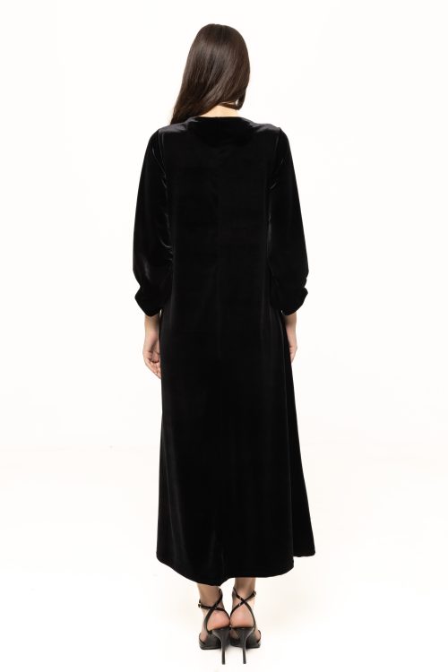 Îngrijirea rochiei este ușoară și intuitivă, catifeaua folosită fiind rezistentă și menținându-și textura impecabilă în timp. Pentru a-i păstra frumusețea, este recomandată spălarea delicată sau curățarea profesională, astfel încât materialul să își mențină strălucirea și finețea.