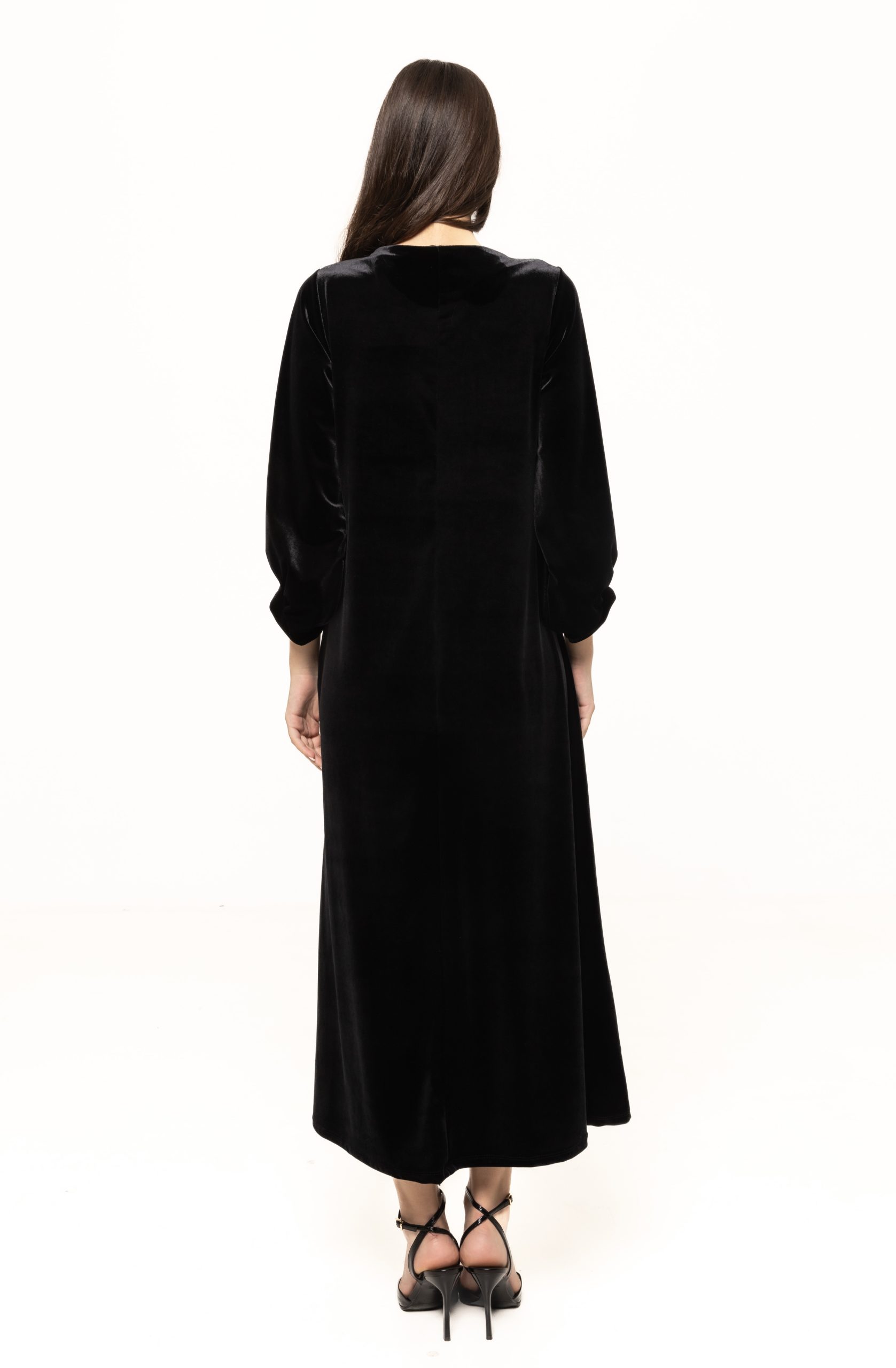 Îngrijirea rochiei este ușoară și intuitivă, catifeaua folosită fiind rezistentă și menținându-și textura impecabilă în timp. Pentru a-i păstra frumusețea, este recomandată spălarea delicată sau curățarea profesională, astfel încât materialul să își mențină strălucirea și finețea.