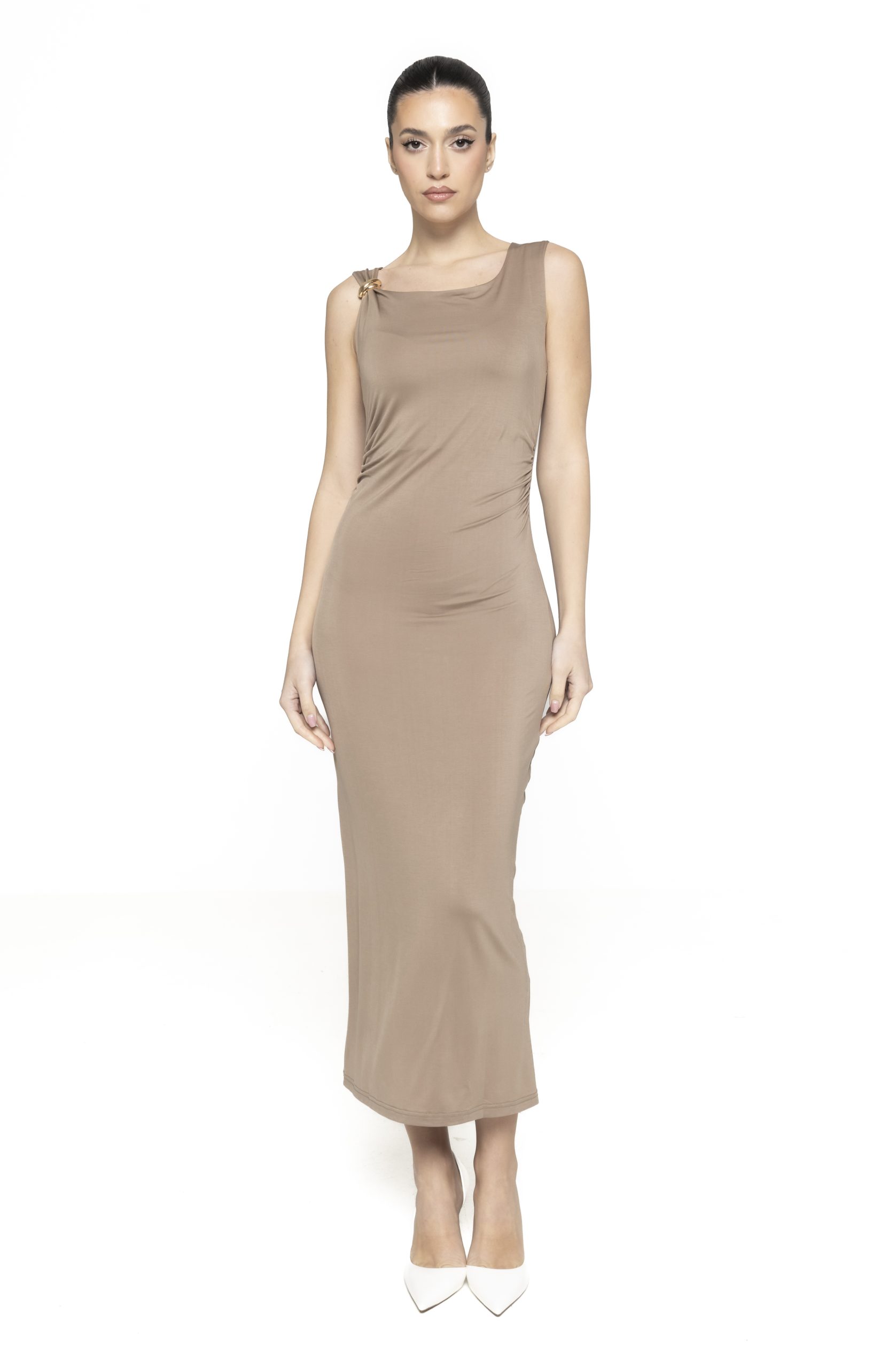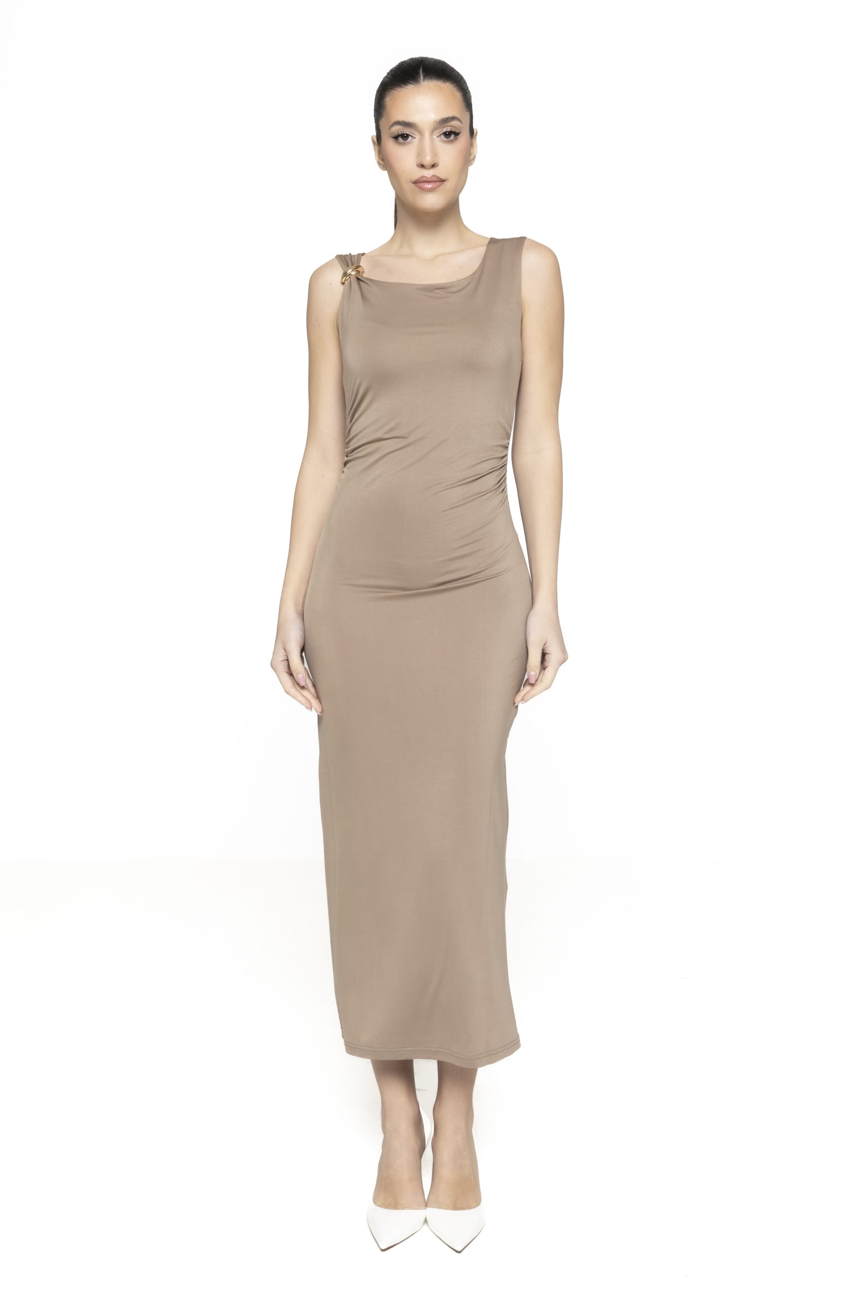 Rochia mulată cu accesoriu auriu Jackie impresionează și prin echilibrul perfect dintre simplitate și detaliu sofisticat, fiind o alegere ideală pentru femeile care apreciază eleganța fără efort. Accesoriul auriu devine punctul focal al întregii ținute, eliminând nevoia unor accesorii suplimentare și simplificând procesul de styling.
