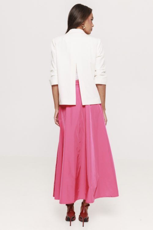 Sacoul cu mânecă trei sferturi și nasturi aurii Estera este ideal și pentru tranzițiile dintre sezoane, datorită croielii sale practice și elegante. Poate fi purtat atât primăvara, cât și toamna, fiind suficient de lejer pentru zilele mai călduroase, dar și potrivit pentru a fi combinat cu piese mai groase în sezonul rece.