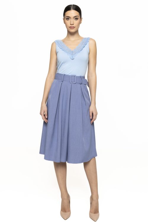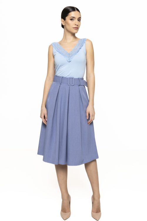 Cromatica topului permite multiple combinații vestimentare, fiind ușor de integrat atât în ținute monocrome, cât și în outfituri mai îndrăznețe. Topul cu aplicație dantelă Erika devine astfel o piesă de bază în garderobă, potrivită pentru diverse stiluri și preferințe. Poate fi purtat în orice moment al zilei, adaptându-se perfect contextului.