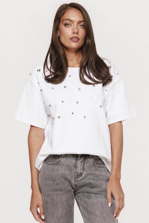 În plus, tricoul cu aplicații Briana este perfect pentru layering, fiind ușor de combinat cu sacouri, jachete sau cardigane. Poate fi purtat atât ca piesă principală, cât și ca element de bază în outfituri mai complexe.