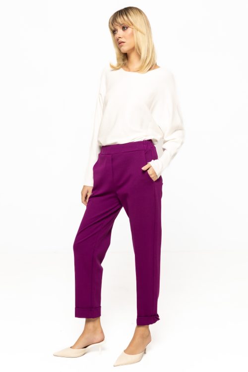 Pantalonii office cu elastic în talie Lucia pot fi purtați atât cu tocuri, pentru un look business elegant, cât și cu pantofi loafers sau balerini, pentru o ținută office casual.
