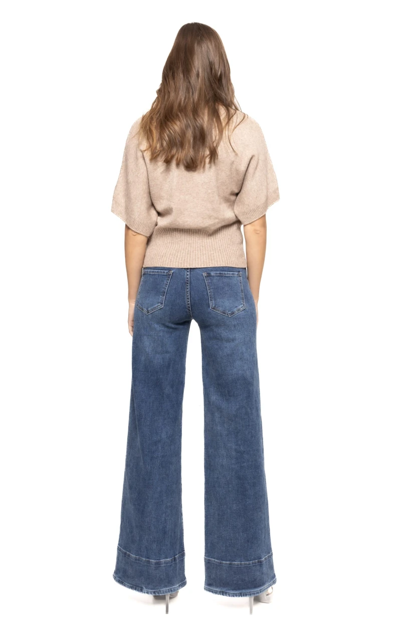 Finisajele blugilor sunt realizate cu mare atenție, pentru a oferi o piesă durabilă și impecabilă din punct de vedere vizual. Cusăturile sunt rezistente și bine conturate, denimul are o textură modernă, iar detaliile de design – precum buzunarele evidențiate sau tăieturile curate – conferă un aer sofisticat, dar în același timp relaxat. Tivul poate fi clasic, despicat sau ușor evazat, în funcție de modelul ales, ceea ce îți oferă posibilitatea de a adapta blugii stilului tău personal.