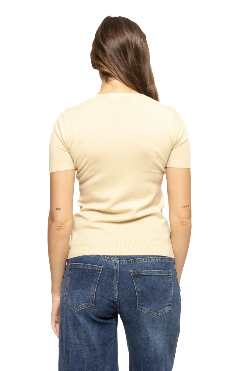 Mânecile scurte sunt ideale pentru sezonul cald, dar bluza se potrivește la fel de bine și sub un sacou, cardigan sau jachetă, ceea ce o face potrivită pentru întreaga perioadă a anului. Decolteul modern, atent proiectat, completează perfect look-ul și oferă un plus de feminitate fără a fi exagerat.