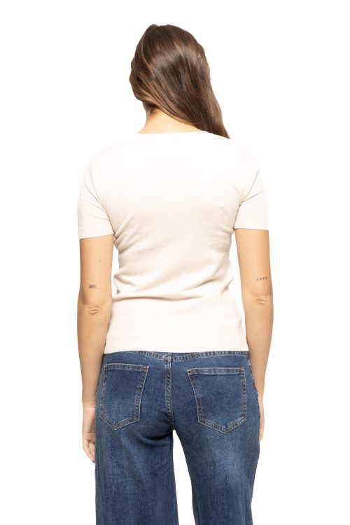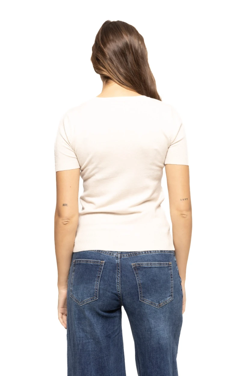 Mânecile scurte sunt ideale pentru sezonul cald, dar bluza se potrivește la fel de bine și sub un sacou, cardigan sau jachetă, ceea ce o face potrivită pentru întreaga perioadă a anului. Decolteul modern, atent proiectat, completează perfect look-ul și oferă un plus de feminitate fără a fi exagerat.
