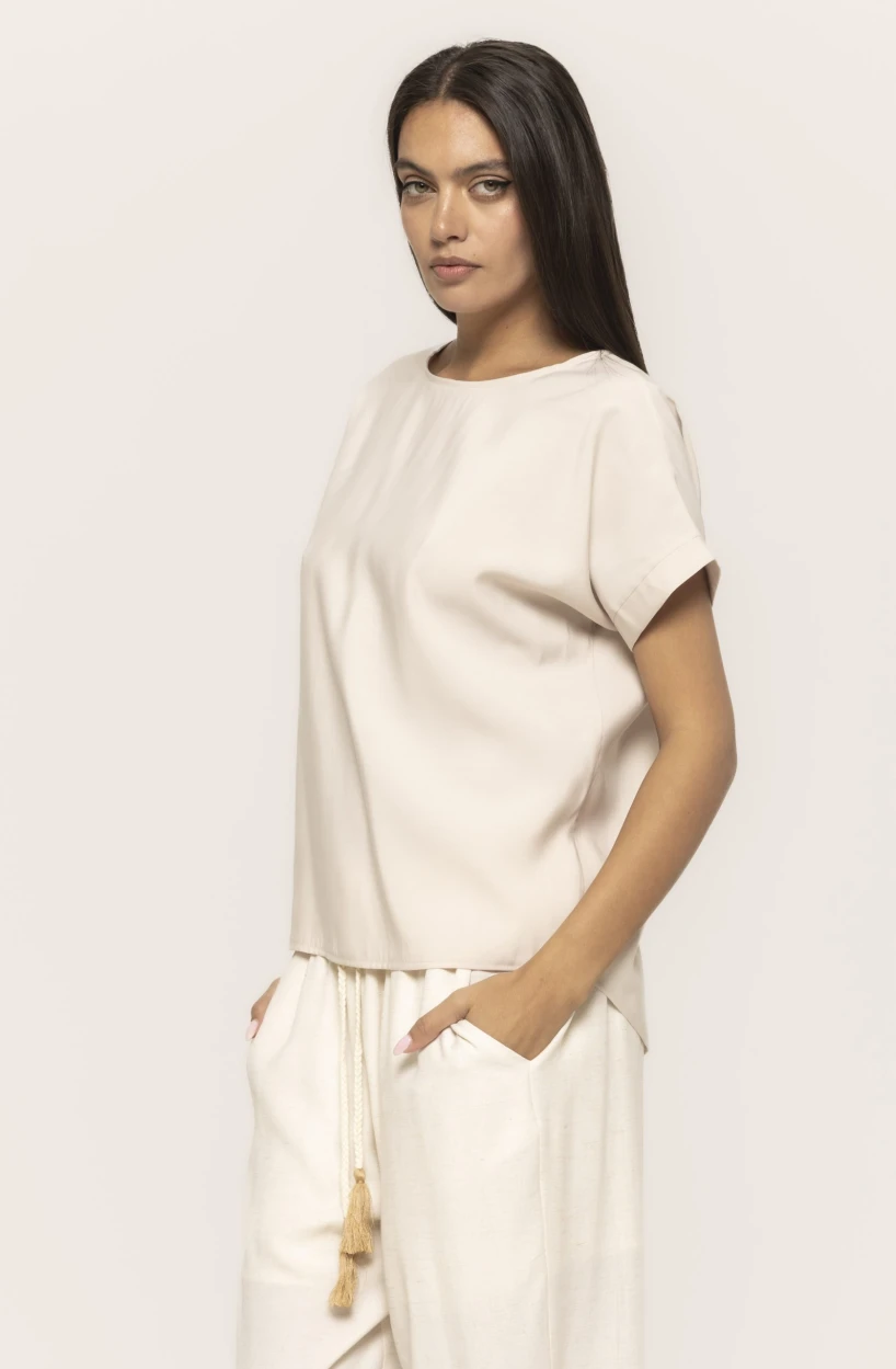 Designul minimalist al acestei bluze casual cu nasture la spate Jane o face extrem de ușor de asortat. Poate fi purtată atât cu pantaloni casual, cât și cu fuste sau jeans, fiind potrivită pentru diverse contexte. Pentru o ținută de zi, o poți combina cu o pereche de pantaloni lejeri și sneakers, obținând un look relaxat și modern. Într-un context office casual, bluza casual cu nasture la spate Jane se potrivește perfect cu pantaloni eleganți sau o fustă midi, completată de pantofi clasici.