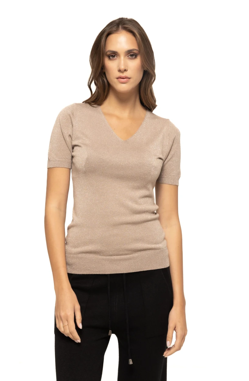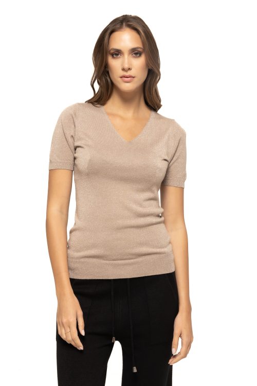 Bluza casual cu sclipici Ionela se remarcă printr-o croială simplă și echilibrată, potrivită pentru orice tip de siluetă. Linia dreaptă urmează natural forma corpului, oferind libertate de mișcare și un confort sporit. Decolteul în V adaugă o notă feminină și elegantă, iar mânecile scurte o fac perfectă pentru sezonul cald sau pentru a fi purtată sub un sacou sau cardigan în zilele mai răcoroase.