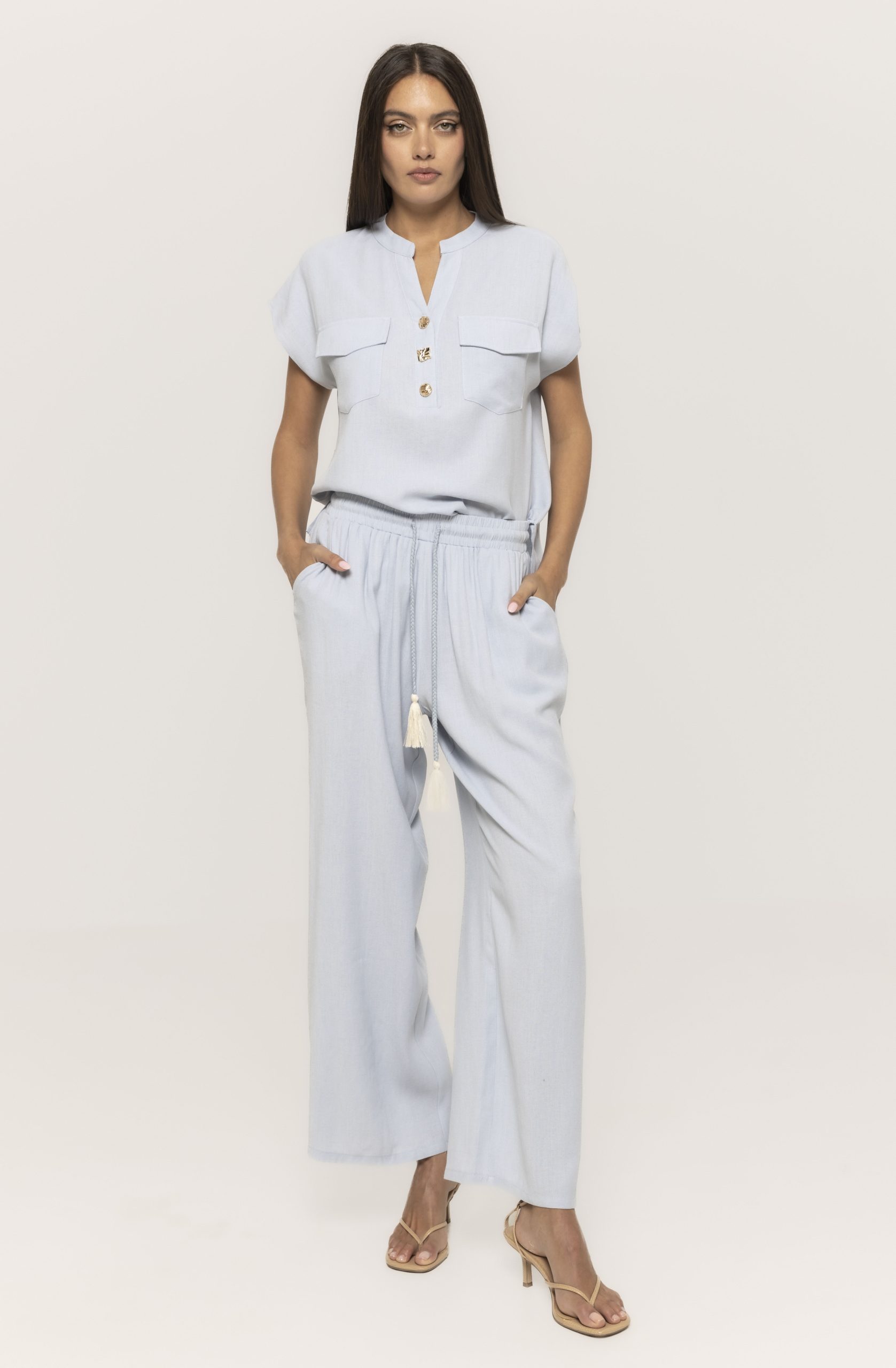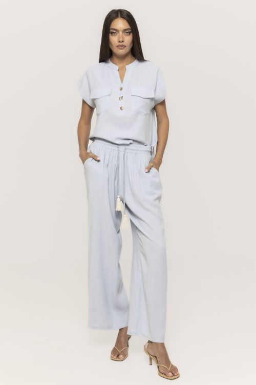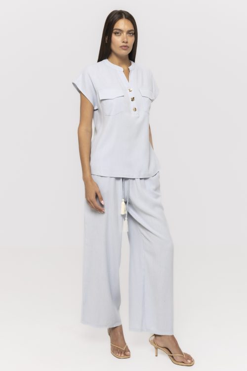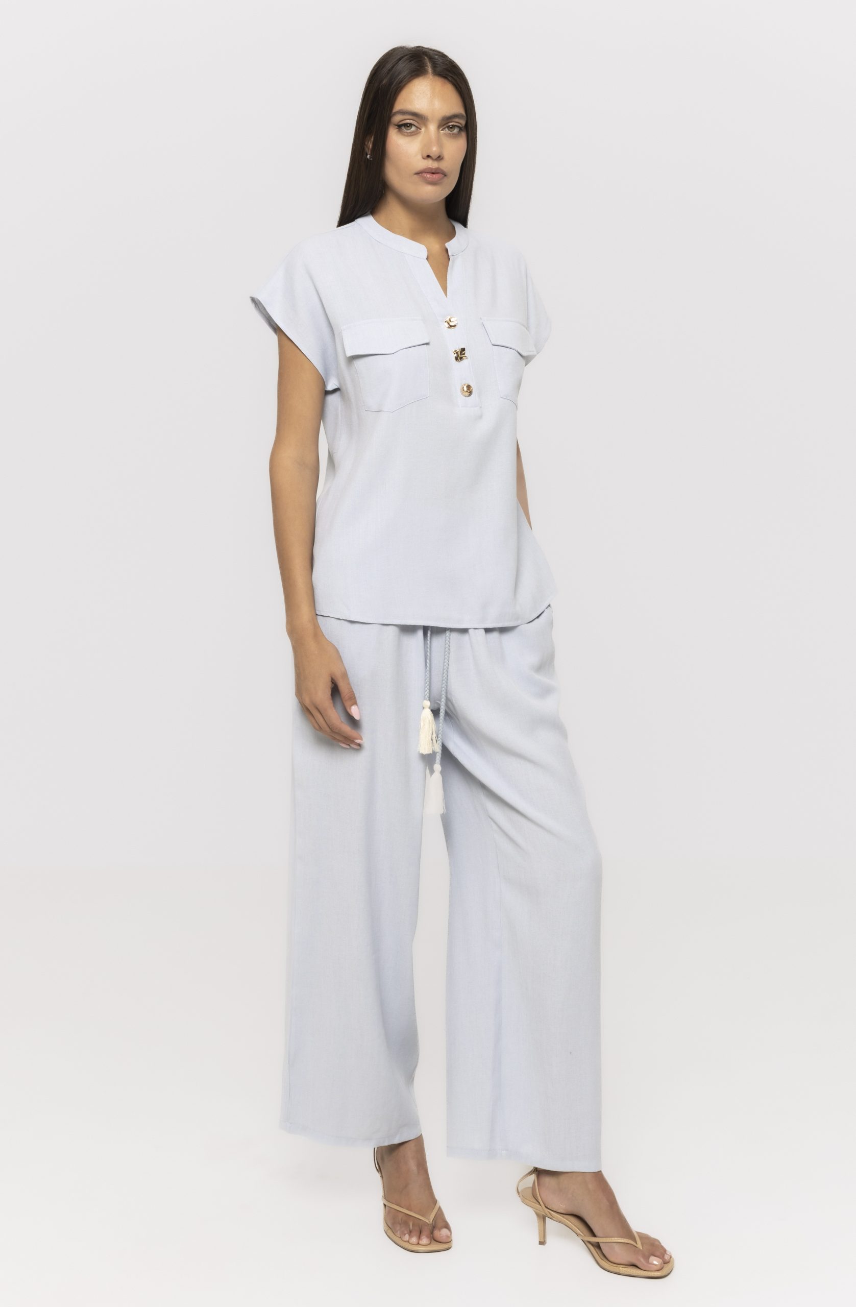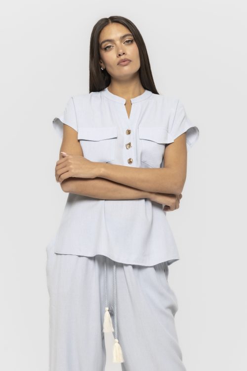 Bluza cu mânecă scurtă și nasturi aurii Vica este alegerea ideală pentru femeia care își dorește o piesă vestimentară elegantă, versatilă și ușor de integrat în ținute moderne, fie că vorbim despre outfituri office sau apariții smart-casual. Cu un design rafinat și detalii atent alese, această bluză reușește să combine perfect simplitatea cu accentele sofisticate, devenind rapid o piesă de bază în garderoba oricărei femei care apreciază stilul curat și feminin.