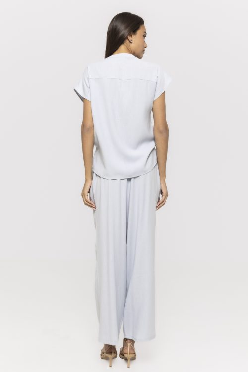 Croiala acestei bluze este gândită pentru a avantaja silueta, oferind un echilibru perfect între lejeritate și structură. Bluza cu mânecă scurtă și nasturi aurii Vica urmărește delicat linia corpului, fără a fi mulată excesiv, ceea ce o face potrivită pentru diverse tipuri de conformație. Această caracteristică contribuie la confortul sporit pe parcursul întregii zile și permite purtarea sa în contexte variate, de la birou până la ieșiri relaxate în oraș.