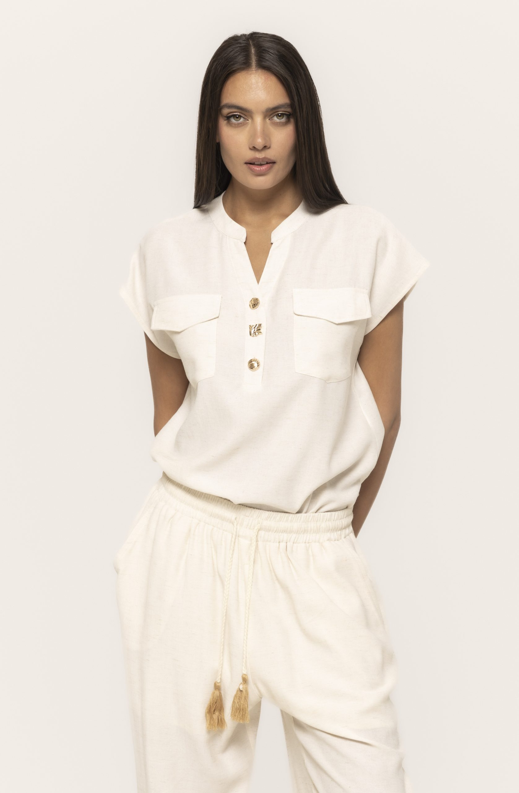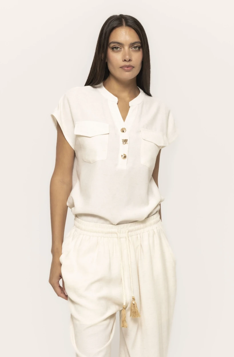 Datorită designului său atemporal, această piesă poate fi purtată sezon după sezon fără să își piardă farmecul. Bluza cu mânecă scurtă și nasturi aurii Vica este o investiție excelentă pentru garderoba ta, oferindu-ți multiple posibilități de styling și un look mereu actual.