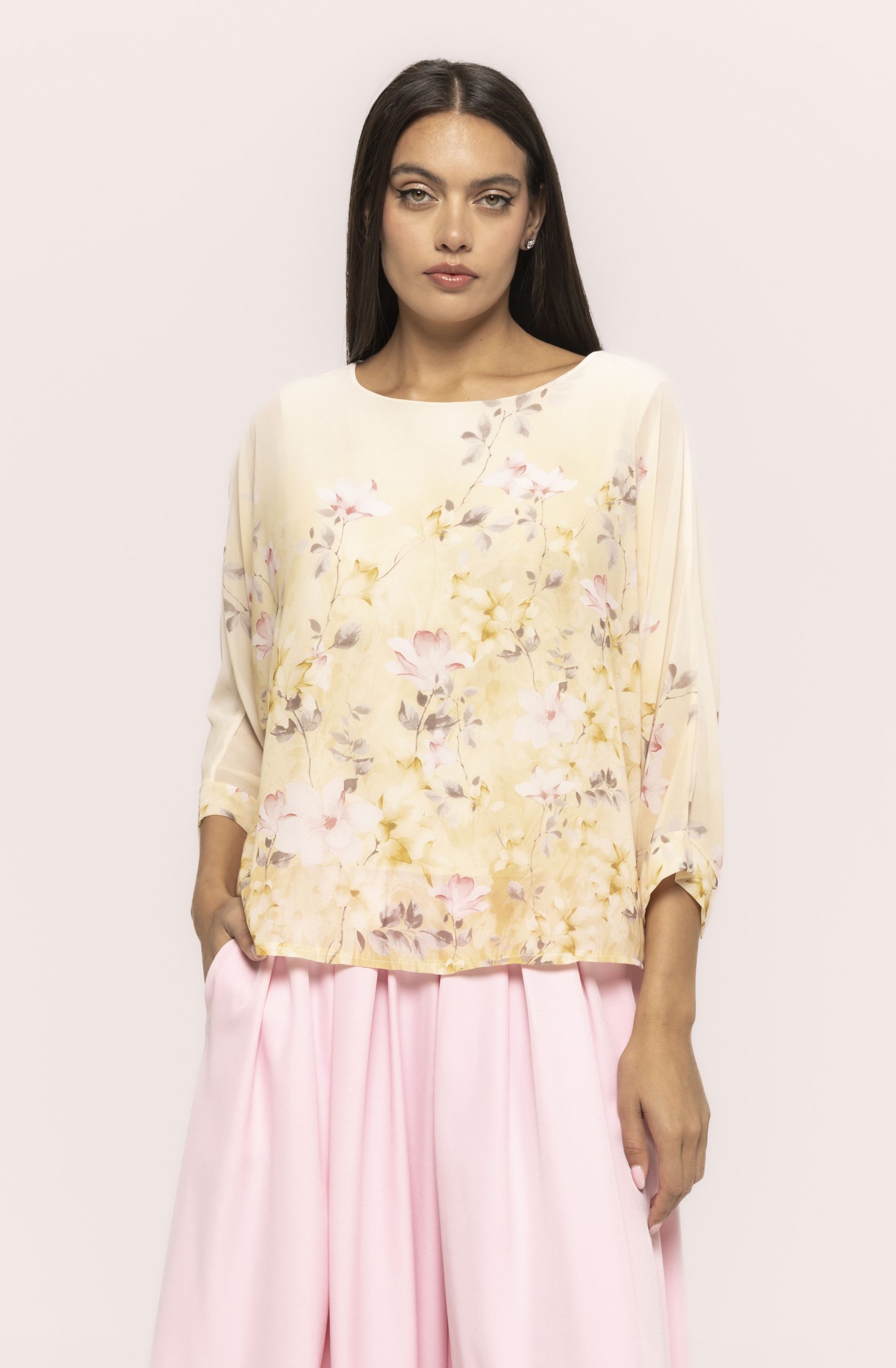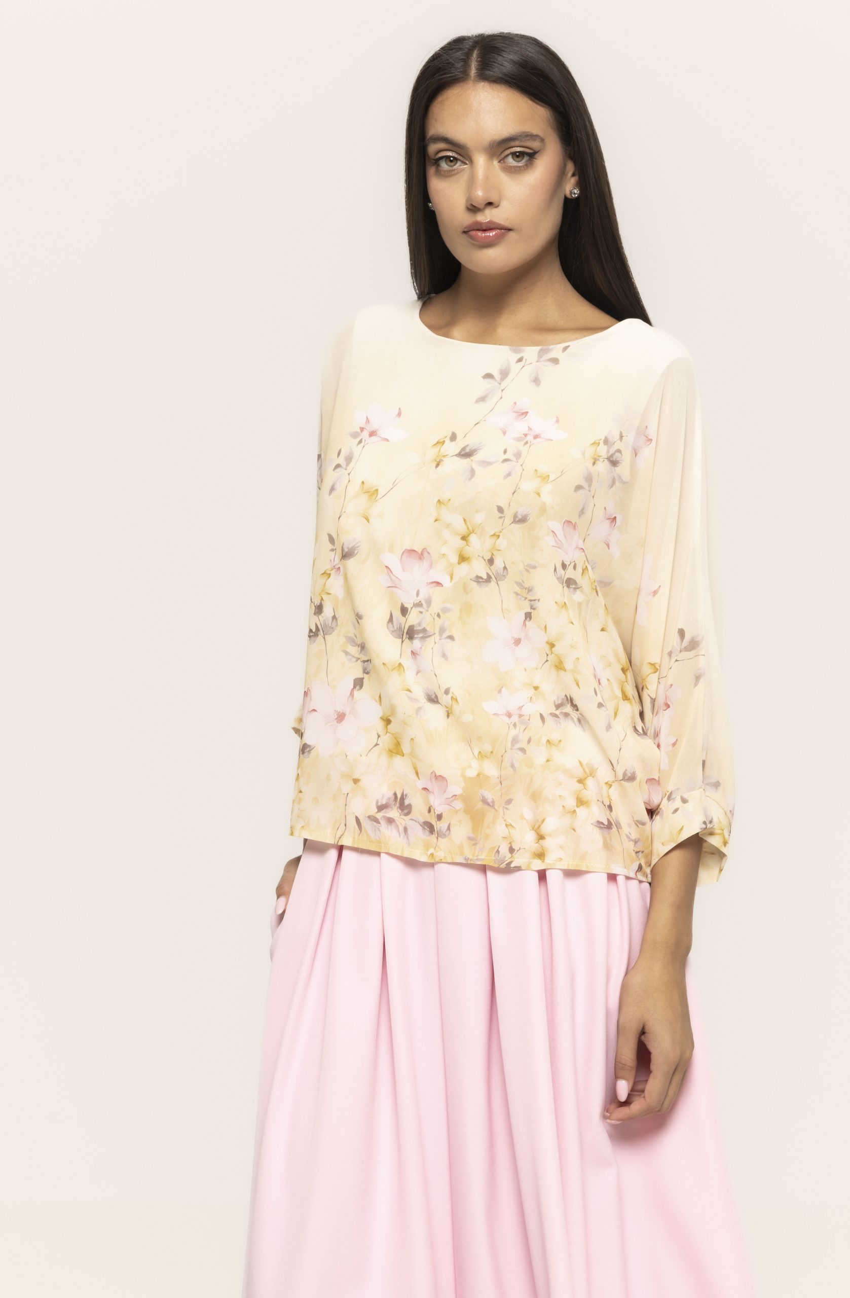 Croiala lejeră, dar bine structurată, permite bluzei să cadă natural pe corp, oferind un look fluid și elegant. Se potrivește perfect cu pantaloni eleganți, fuste sau jeans, fiind o piesă extrem de versatilă. Indiferent dacă alegi o ținută de zi sau una pentru o întâlnire specială, bluza cu mânecă trei sferturi și imprimeu floral Simina se adaptează cu ușurință stilului tău.