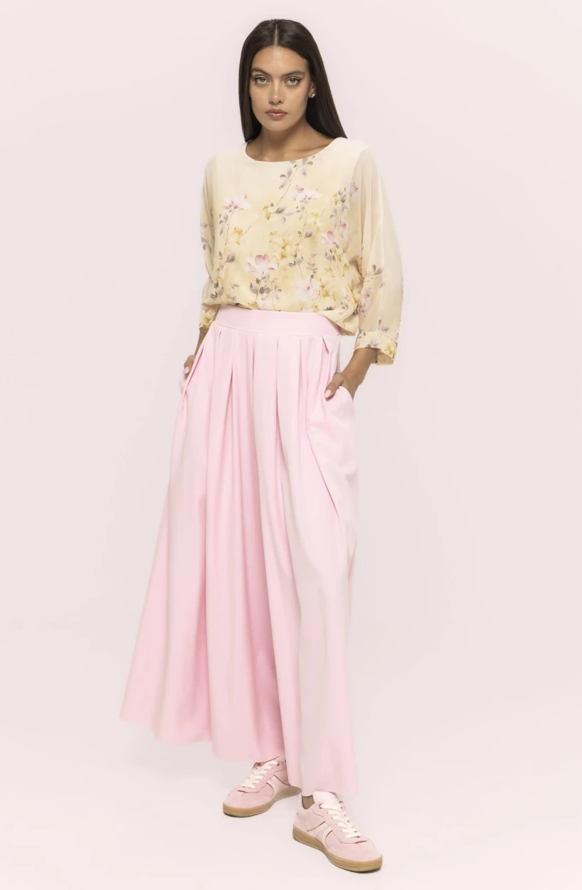 Bluza cu mânecă trei sferturi și imprimeu floral Simina se remarcă și prin ușurința cu care poate fi adaptată diferitelor stiluri personale. Dacă preferi un look minimalist, o poți combina cu piese în culori neutre, lăsând imprimeul floral să fie elementul central al ținutei. Pentru un stil mai îndrăzneț, poți adăuga accesorii colorate sau texturi diferite, creând un outfit modern și expresiv.