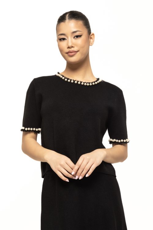 Mărgelele aplicate cu grijă adaugă un detaliu vizual subtil, dar remarcabil, care transformă bluza Marina într-un articol statement fără a fi exagerat. Acest decor delicat oferă o notă de strălucire și eleganță, fiind perfect pentru a evidenția zona decolteului sau umerilor. Croiala simplă și liniile curate permit combinarea ușoară cu alte piese vestimentare, oferind libertatea de a crea ținute diverse și armonioase.