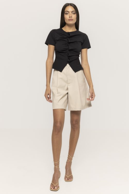 Bluza mulată cu nasturi Holly se evidențiază și prin capacitatea sa de a rămâne mereu actuală, indiferent de tendințele în continuă schimbare din modă. Este genul de piesă basic reinterpretată, care nu se demodează și poate fi purtată sezon după sezon. Datorită designului său echilibrat, bluza mulată cu nasturi Holly poate fi integrată atât în ținute minimaliste, cât și în outfituri mai îndrăznețe, în funcție de accesorizare.
