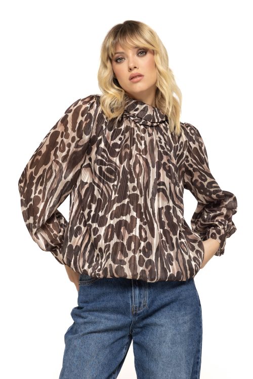 Imprimeul Kara este elementul central care transformă această bluză într-o piesă statement. Cu motive abstracte și culori armonioase, imprimeul adaugă personalitate și sofisticare, făcând bluza potrivită atât pentru ținute casual chic, cât și pentru evenimente speciale. Croiala atent realizată pune în evidență linia corpului fără a fi restrictivă, iar detaliile fine, cum ar fi manșetele, gulerul sau tivul discret, completează aspectul elegant al piesei.