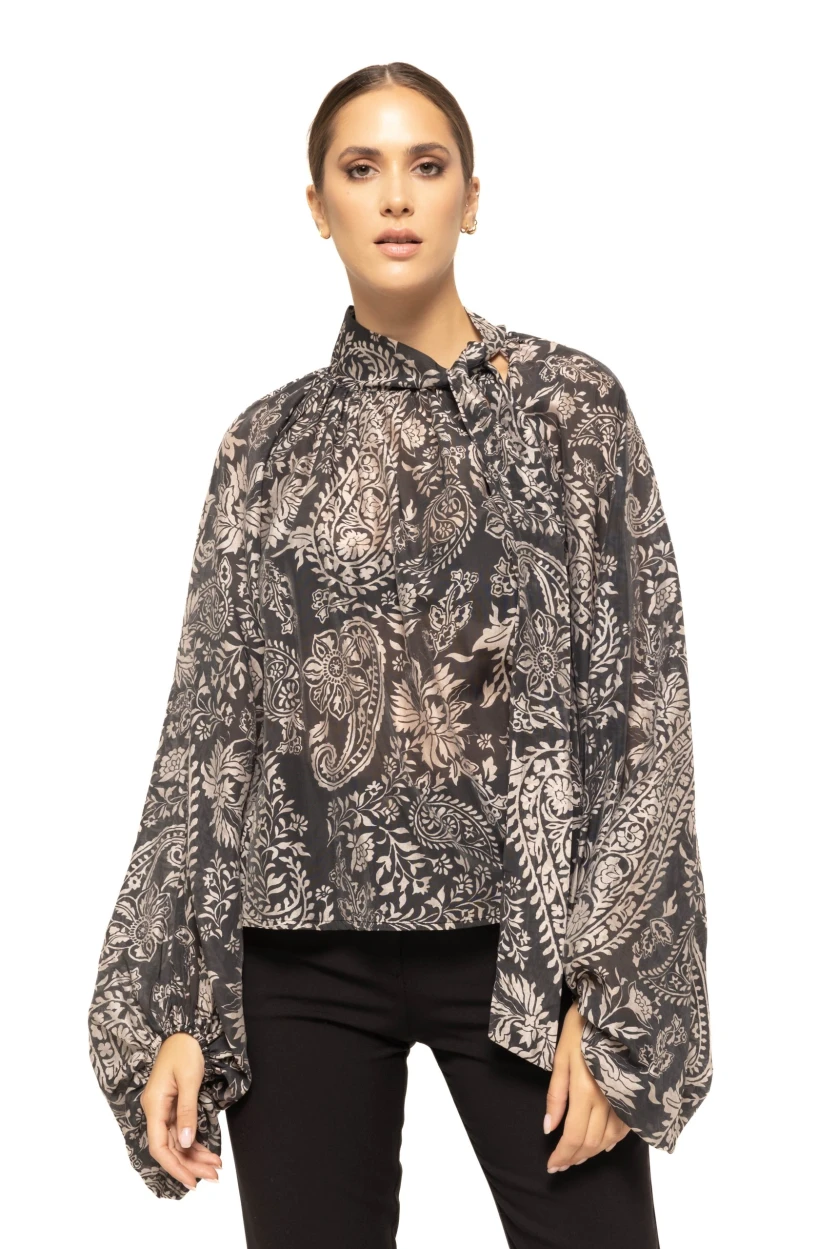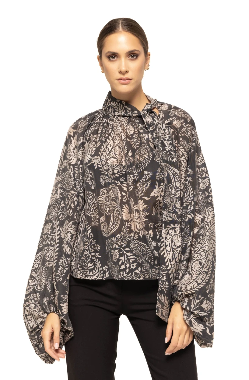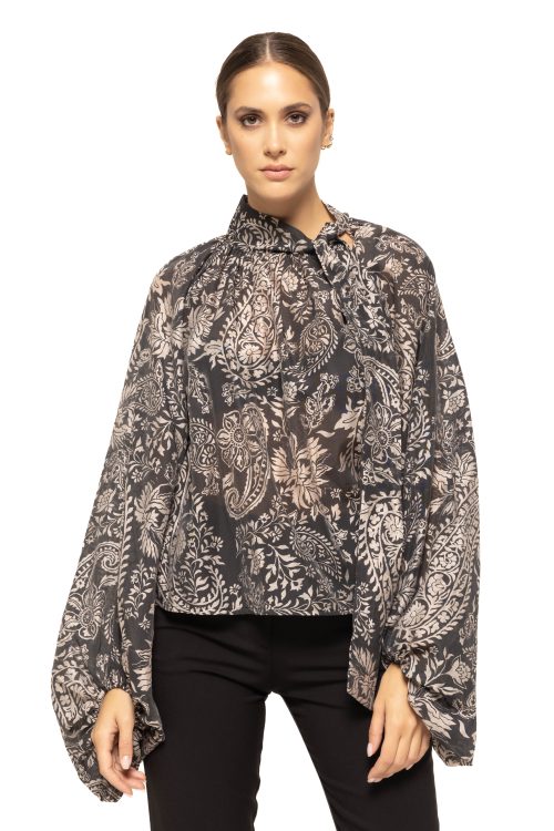 Fiecare element al acestei bluze vaporoase cu imprimeu floral Ayana este gândit pentru a scoate în evidență feminitatea și rafinamentul. Fundița de la gât oferă un accent romantic, în timp ce imprimeul floral în nuanțe armonioase transmite o energie pozitivă și caldă.