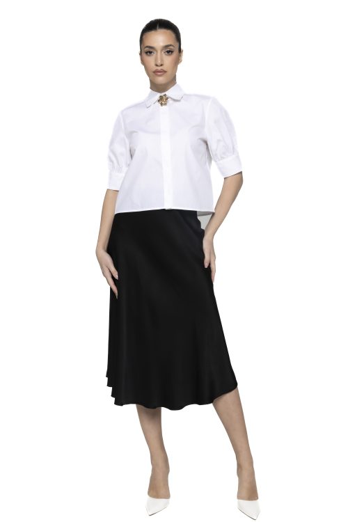 De asemenea, cămașa cu aplicație broșă Alisa îți oferă libertatea de a personaliza look-ul în funcție de preferințe. Broșa poate deveni punctul central al outfitului sau poate fi completată de alte accesorii discrete pentru un efect armonios. Astfel, fiecare apariție devine unică, adaptată stilului tău personal.