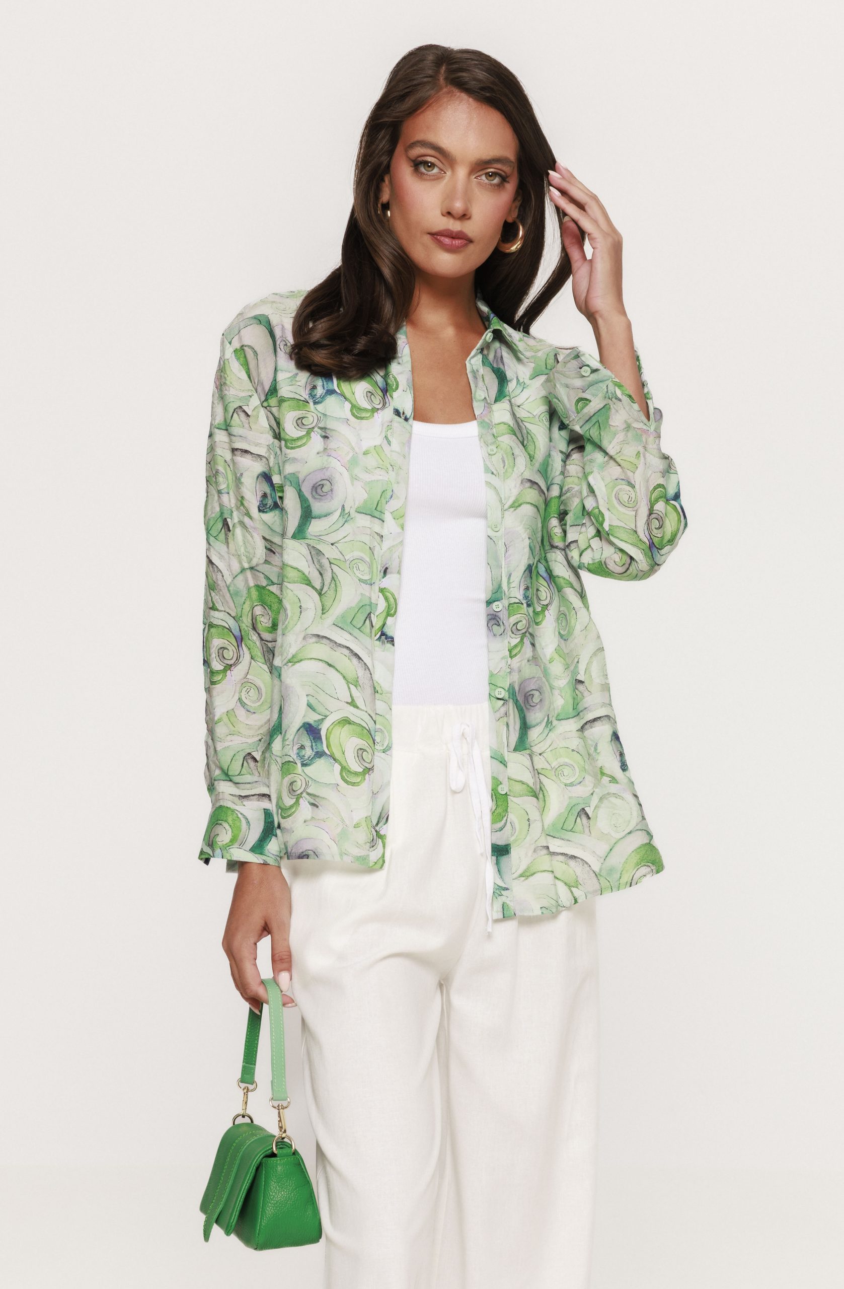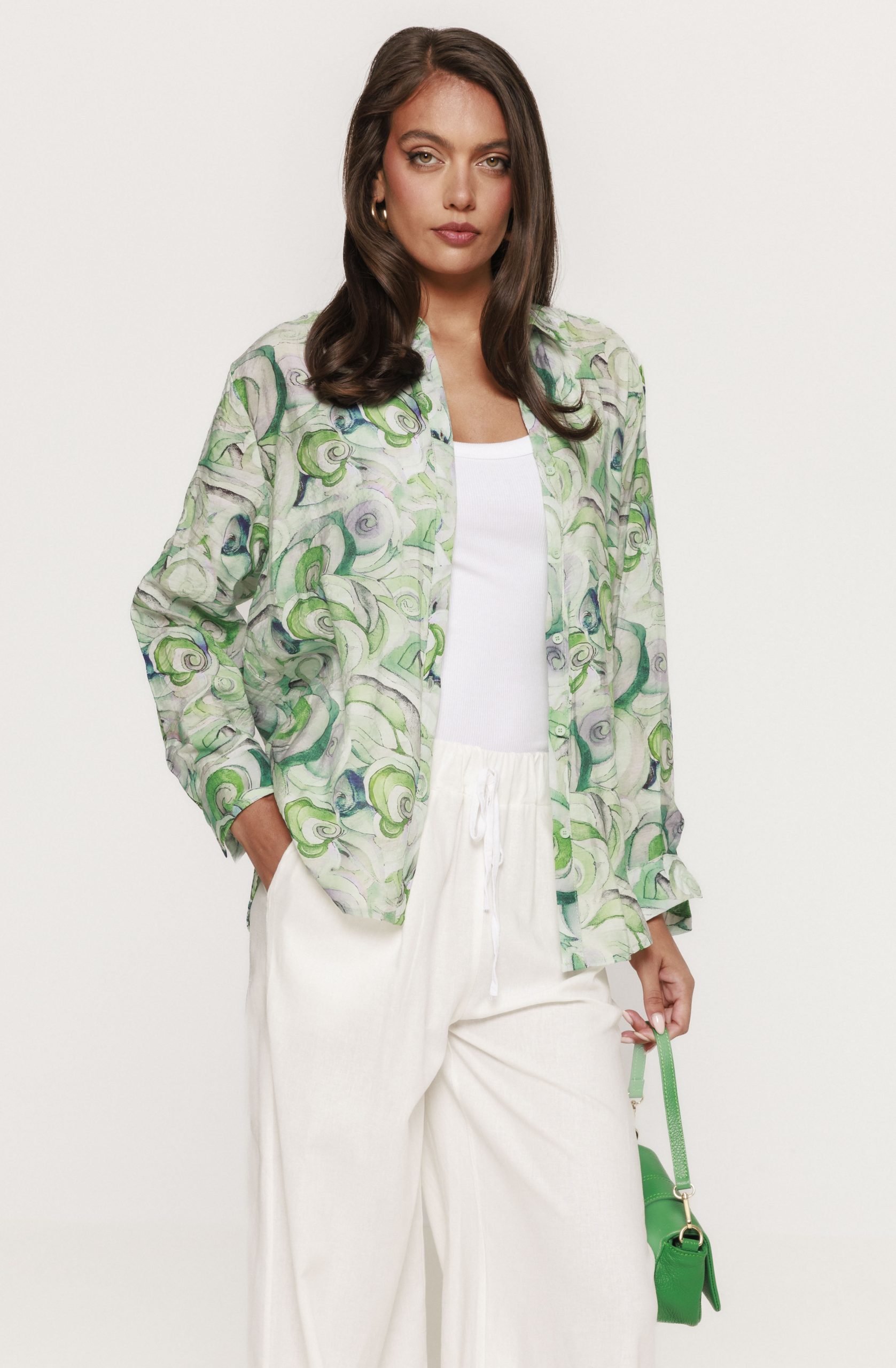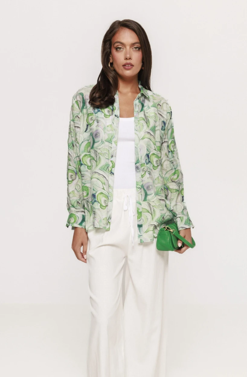 Cămașa cu diferite imprimeuri Angi este alegerea ideală pentru femeia care își dorește să iasă din tipare și să adopte un stil original, modern și plin de personalitate. Cu un design creativ și un mix de imprimeuri în tonuri proaspete de verde, această cămașă aduce un aer artistic și vibrant garderobei tale, fiind perfectă pentru ținutele de zi, dar și pentru combinații smart-casual.