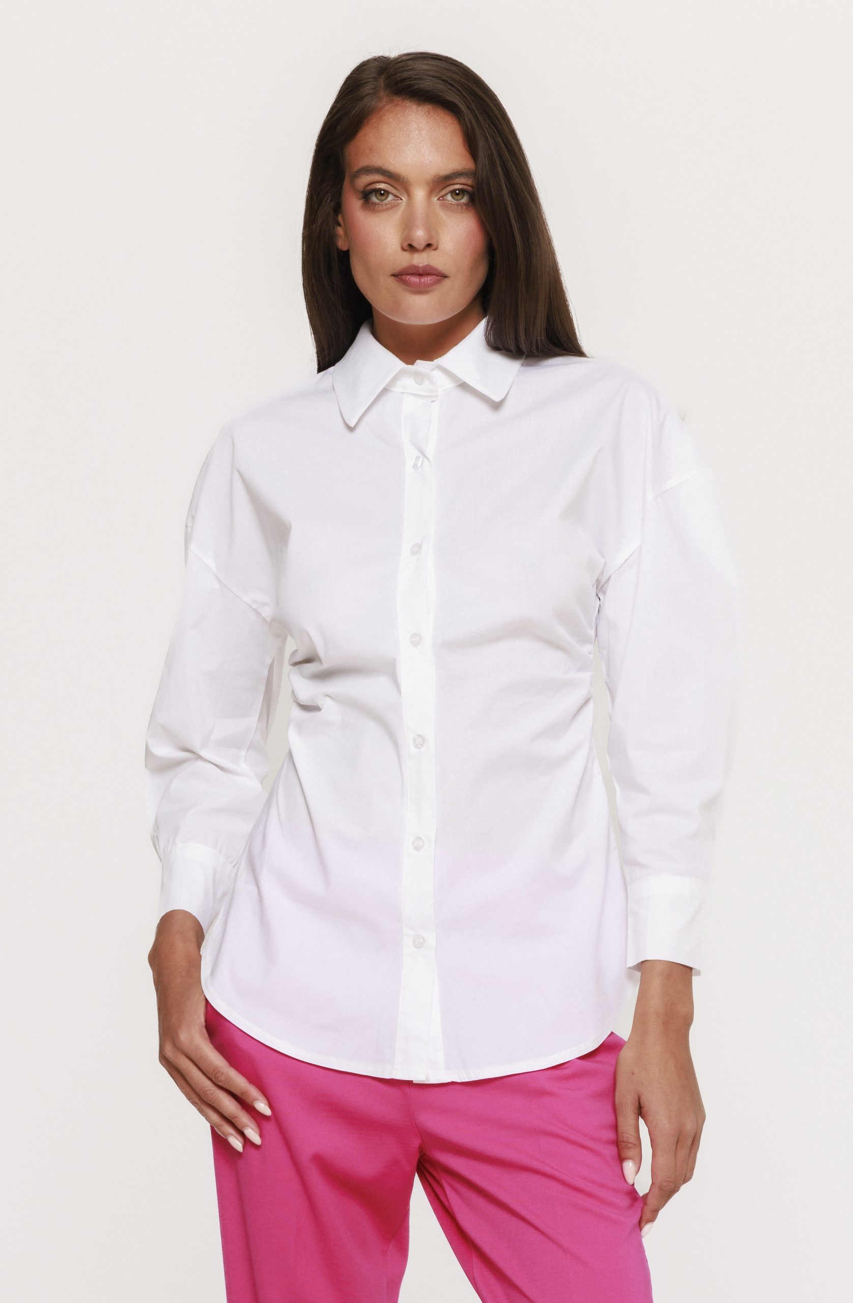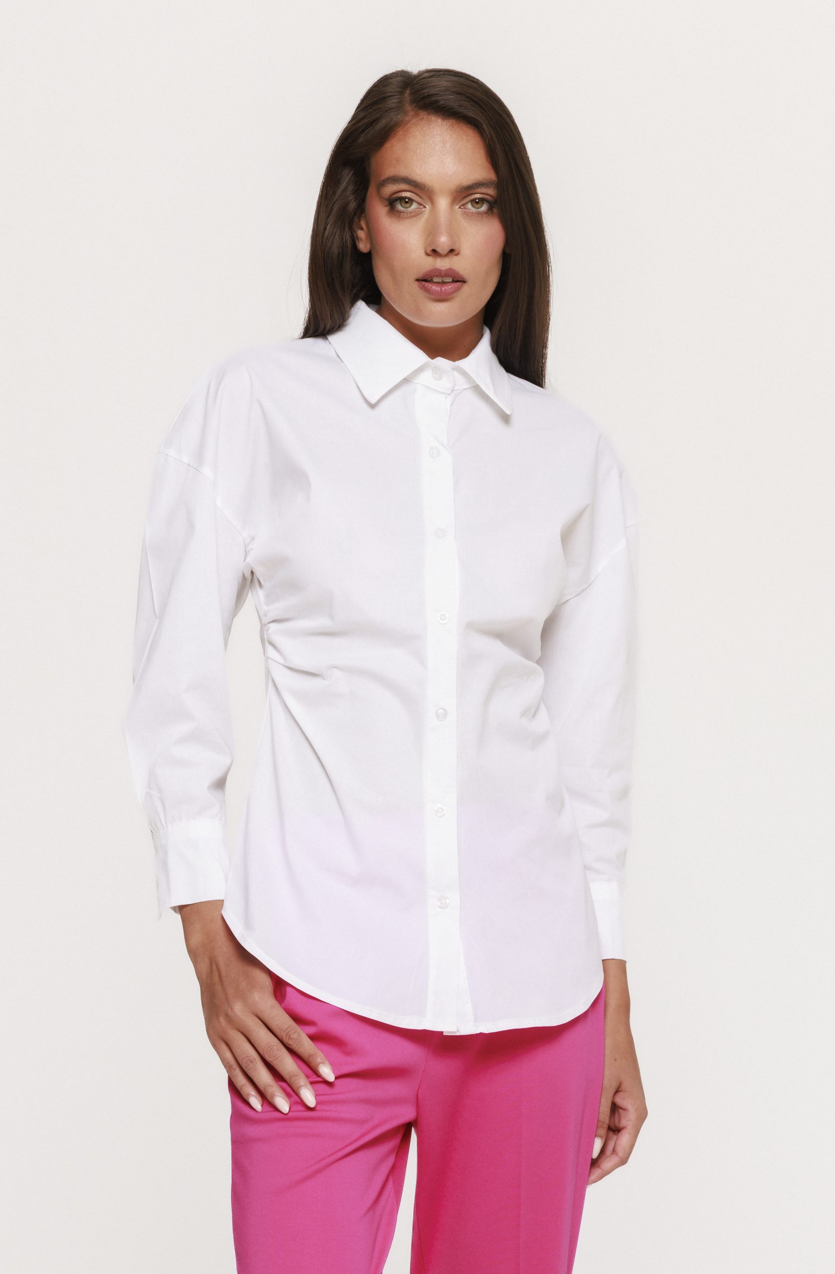 Cămașa cu fronseu lateral Doroty este piesa vestimentară care aduce un plus de rafinament și modernitate oricărei garderobe feminine. Creată pentru femeia care își dorește să îmbine eleganța cu confortul, această cămașă cu fronseu lateral Doroty devine rapid alegerea ideală pentru ținutele de zi, dar și pentru aparițiile mai sofisticate. Designul său atent gândit pune în valoare silueta, oferind un efect subtil de subțiere și alungire a corpului.