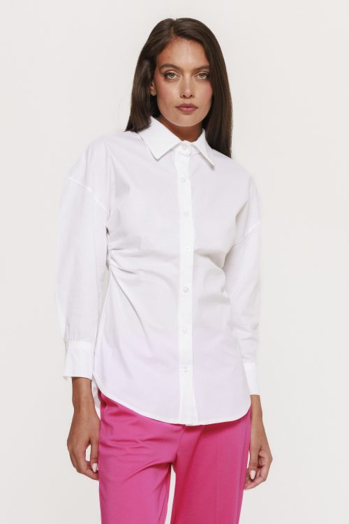 Din punct de vedere stilistic, această cămașă se aliniază perfect tendințelor actuale, în care accentul cade pe detalii feminine și croieli care pun în valoare corpul. Fronseul lateral este un element modern, foarte apreciat în moda contemporană, fiind des întâlnit în colecțiile designerilor de top.
