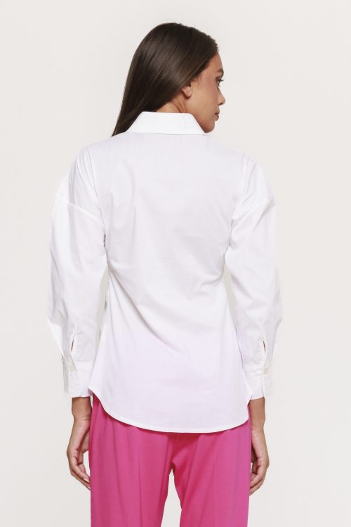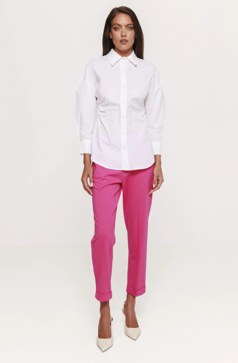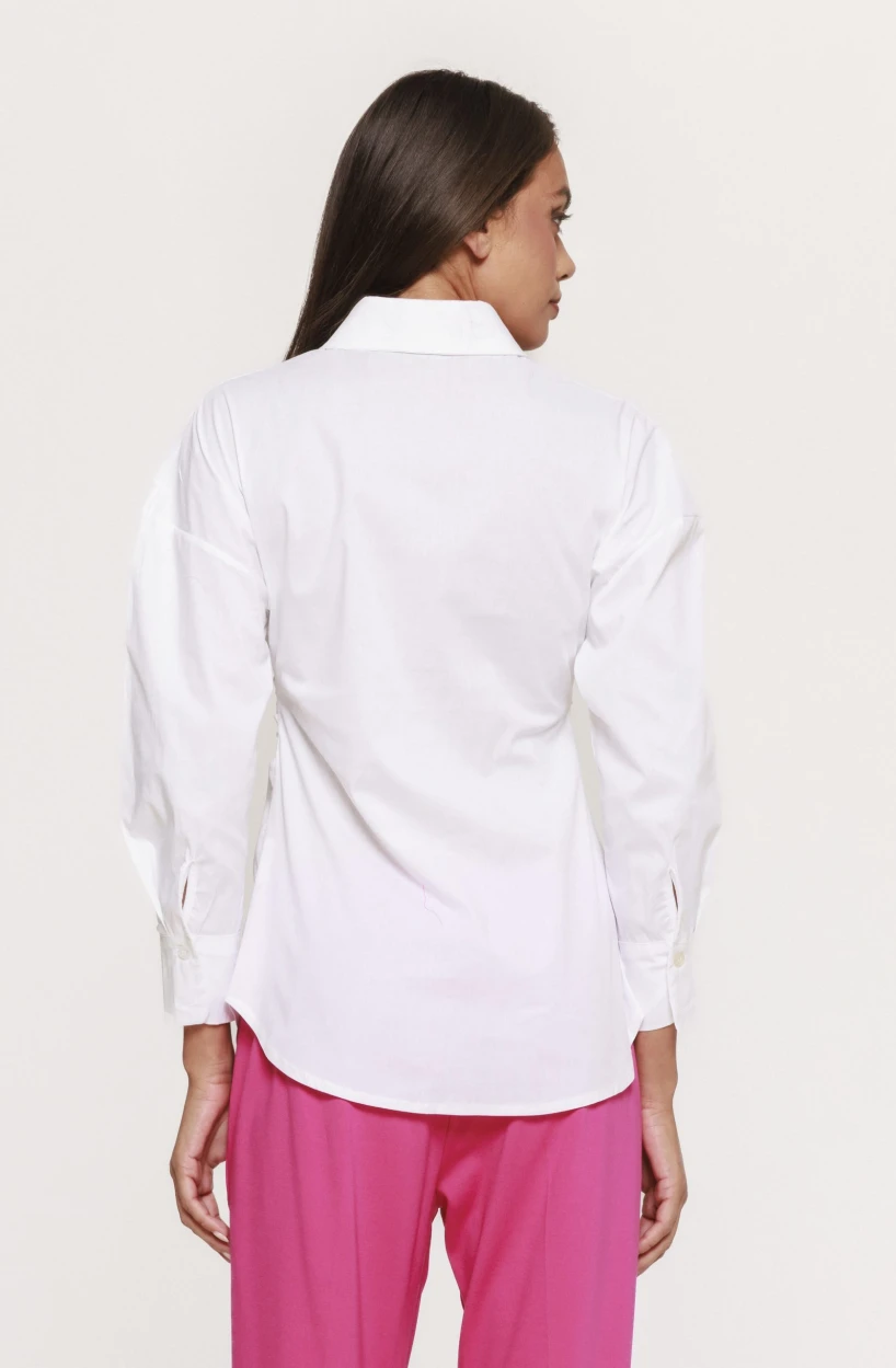 Versatilitatea este un alt avantaj major al acestei piese. Cămașa cu fronseu lateral Doroty poate fi integrată cu ușurință într-o varietate de ținute. Pentru un look office elegant, o poți asorta cu pantaloni conici sau o fustă midi și pantofi clasici. Dacă îți dorești un outfit casual-chic, combin-o cu o pereche de jeans și sneakers sau sandale minimaliste. De asemenea, pentru un look de seară, această cămașă poate fi purtată cu pantaloni eleganți sau o fustă satinată, completată de accesorii statement.