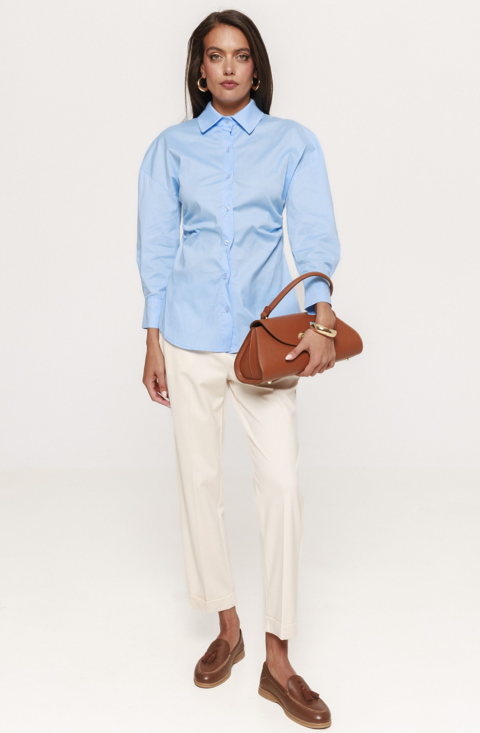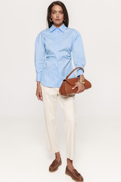 Croiala este gândită astfel încât să avantajeze mai multe tipuri de siluetă. Cămașa cu fronseu lateral Doroty urmărește linia corpului fără a fi prea strâmtă, oferind libertate de mișcare și un aspect armonios. Mânecile și decolteul sunt atent finisate, contribuind la un design echilibrat și modern.