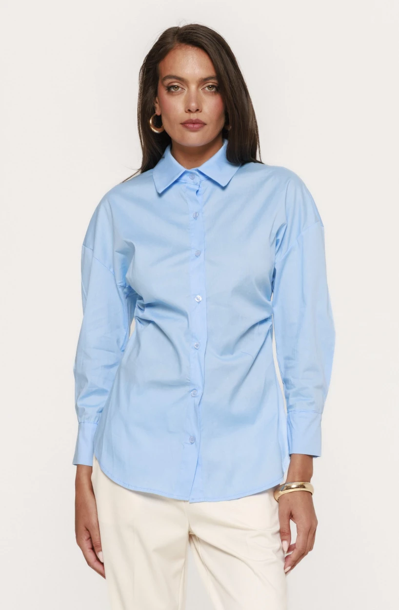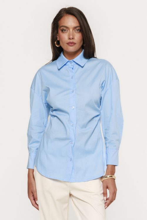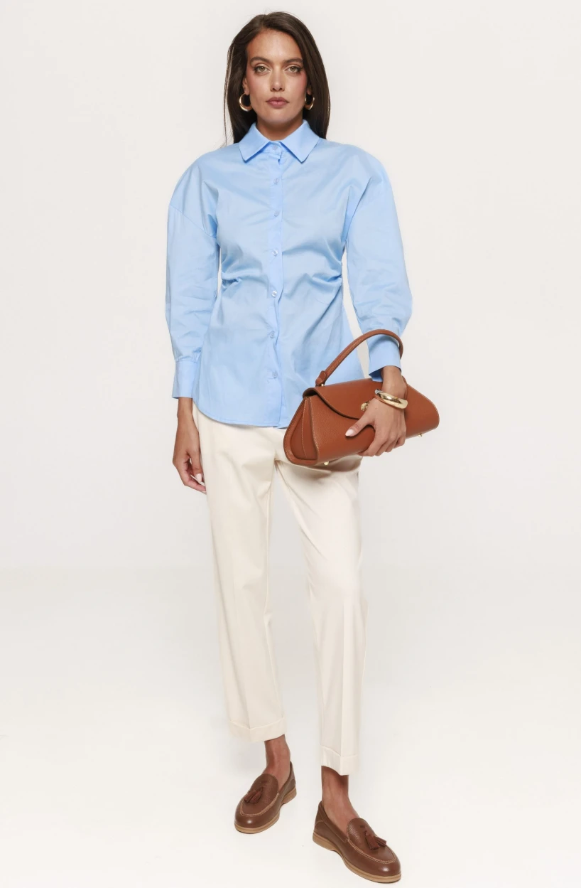 Versatilitatea este un alt avantaj major al acestei piese. Cămașa cu fronseu lateral Doroty poate fi integrată cu ușurință într-o varietate de ținute. Pentru un look office elegant, o poți asorta cu pantaloni conici sau o fustă midi și pantofi clasici. Dacă îți dorești un outfit casual-chic, combin-o cu o pereche de jeans și sneakers sau sandale minimaliste. De asemenea, pentru un look de seară, această cămașă poate fi purtată cu pantaloni eleganți sau o fustă satinată, completată de accesorii statement.
