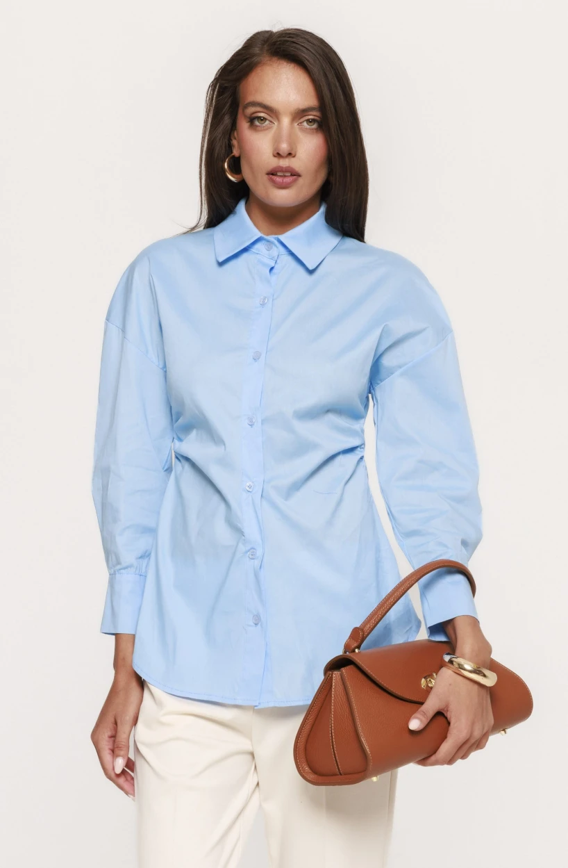 Din punct de vedere stilistic, această cămașă se aliniază perfect tendințelor actuale, în care accentul cade pe detalii feminine și croieli care pun în valoare corpul. Fronseul lateral este un element modern, foarte apreciat în moda contemporană, fiind des întâlnit în colecțiile designerilor de top.