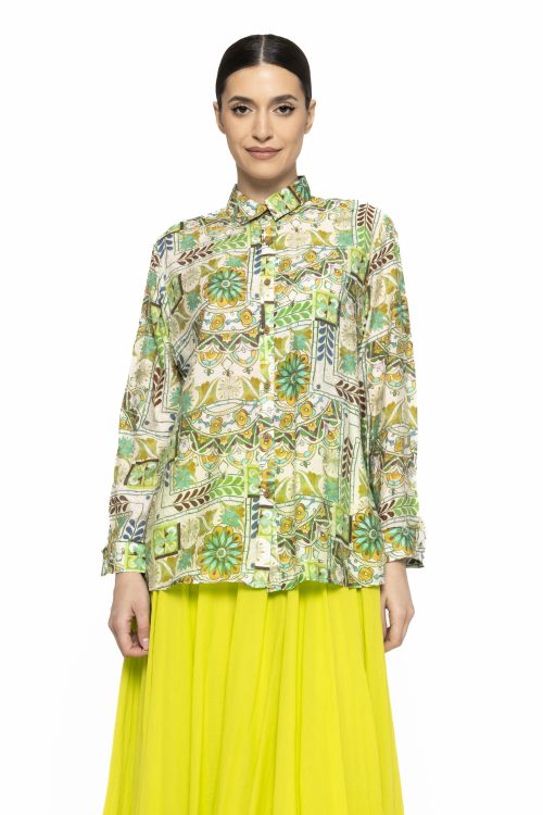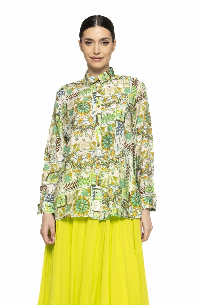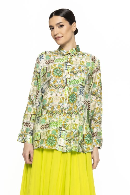 Cămașă cu imprimeu geometric floral Antonia – echilibrul perfect între modern și feminin