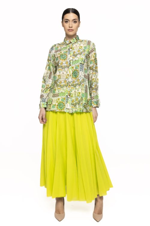 Cămașa cu imprimeu geometric floral Antonia este extrem de versatilă și poate fi integrată cu ușurință în diferite tipuri de ținute. Pentru un look office, o poți combina cu pantaloni eleganți sau fuste conice, adăugând o pereche de pantofi cu toc. Pentru o ținută casual, o poți purta cu jeans sau pantaloni lejeri, alături de sneakers sau sandale. De asemenea, poate fi purtată atât închisă, cât și descheiată peste un top simplu, pentru un look modern și relaxat.