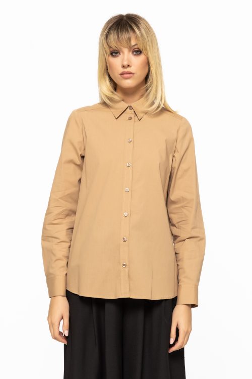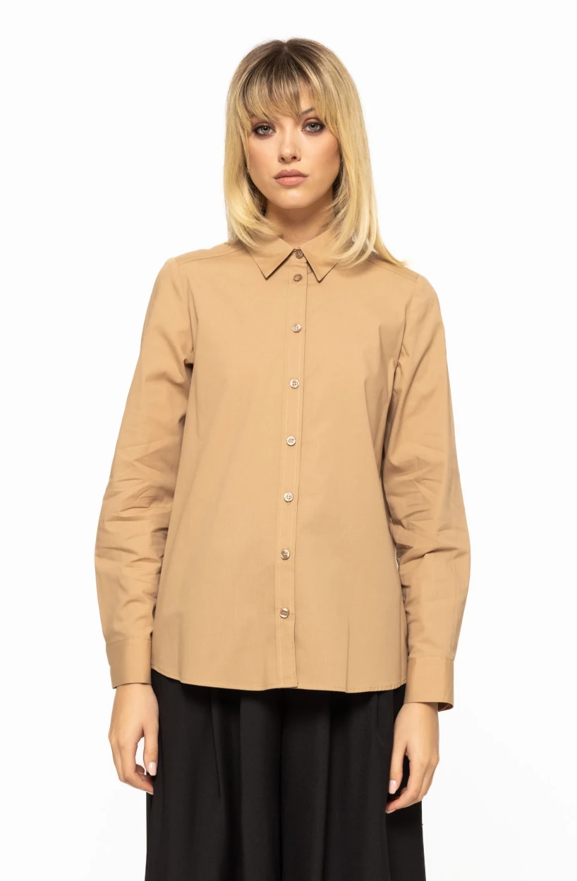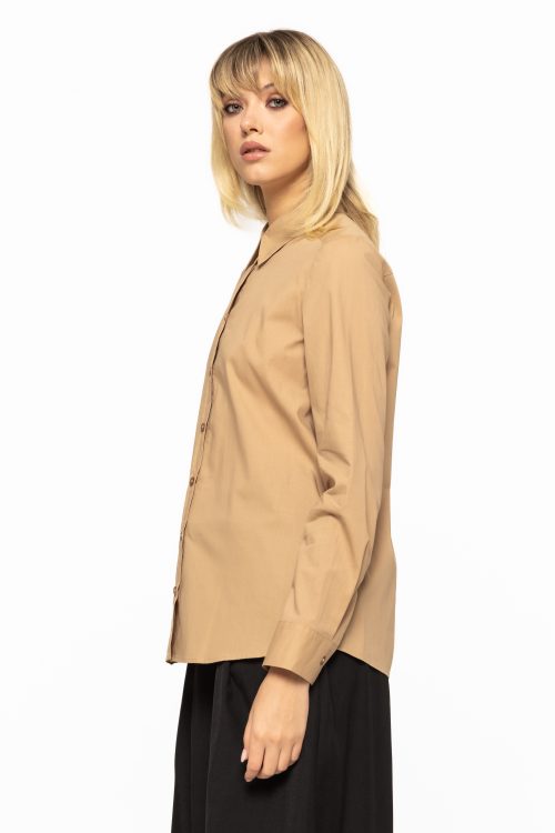 Croiala cămașei Emily este ușor cambrată, subliniind delicat talia și conturând o siluetă feminină. Gulerul clasic și nasturii fin lucioși completează designul simplu, dar elegant, care nu se demodează niciodată. Este o piesă atemporală, ușor de integrat în orice ținută, de la office până la smart-casual.