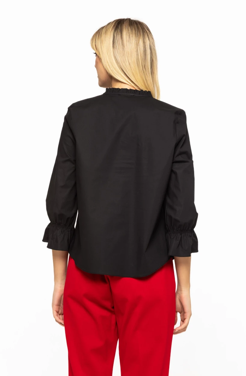 Din punct de vedere stilistic, cămașa cu mânecă trei sferturi Emily este un adevărat cameleon vestimentar. Poate fi integrată într-o ținută elegantă de birou, într-una lejeră de weekend sau chiar într-o apariție rafinată de seară. În funcție de accesorii, poate trece cu ușurință de la clasic la modern, de la sobru la romantic.