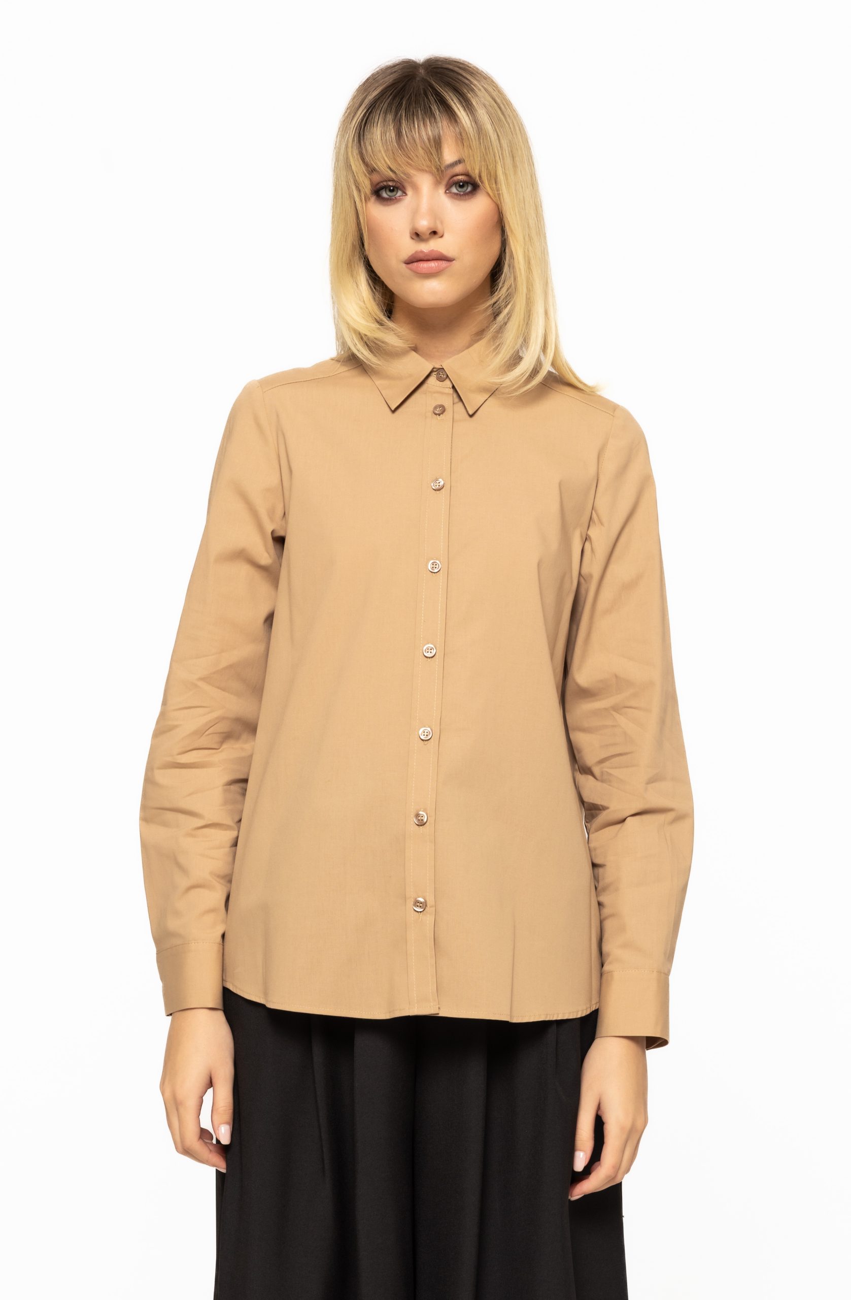 Croiala cămașei Emily este ușor cambrată, subliniind delicat talia și conturând o siluetă feminină. Gulerul clasic și nasturii fin lucioși completează designul simplu, dar elegant, care nu se demodează niciodată. Este o piesă atemporală, ușor de integrat în orice ținută, de la office până la smart-casual.