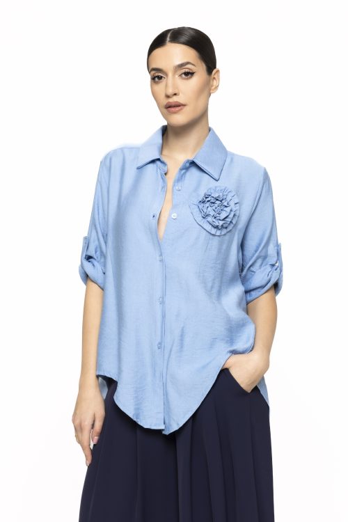 Cămașă cu model floare în piept Teo – eleganță feminină cu accent delicat și modern