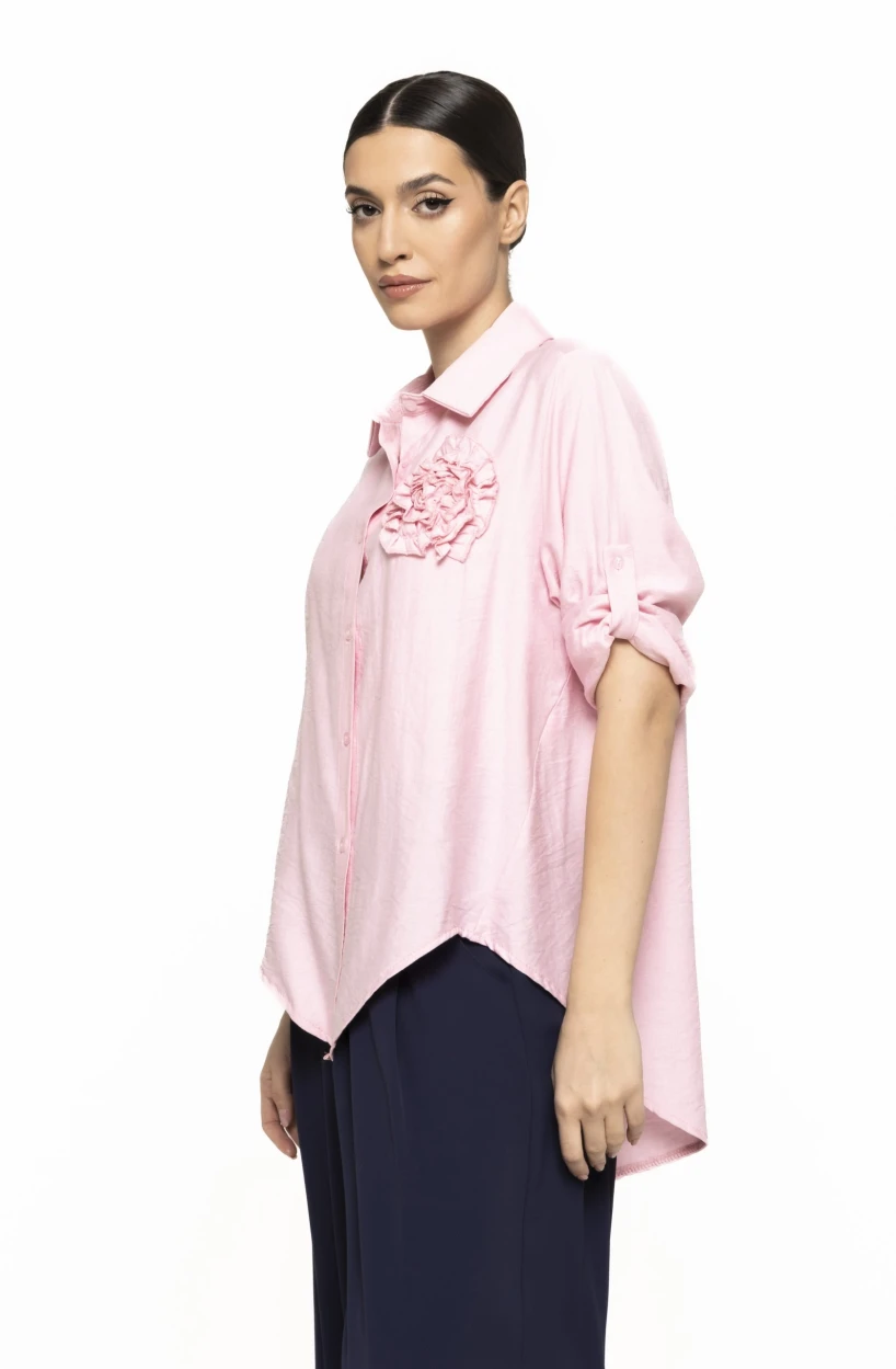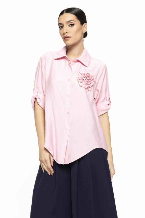 Cămașă cu model floare în piept Teo – eleganță feminină cu accent delicat și modern