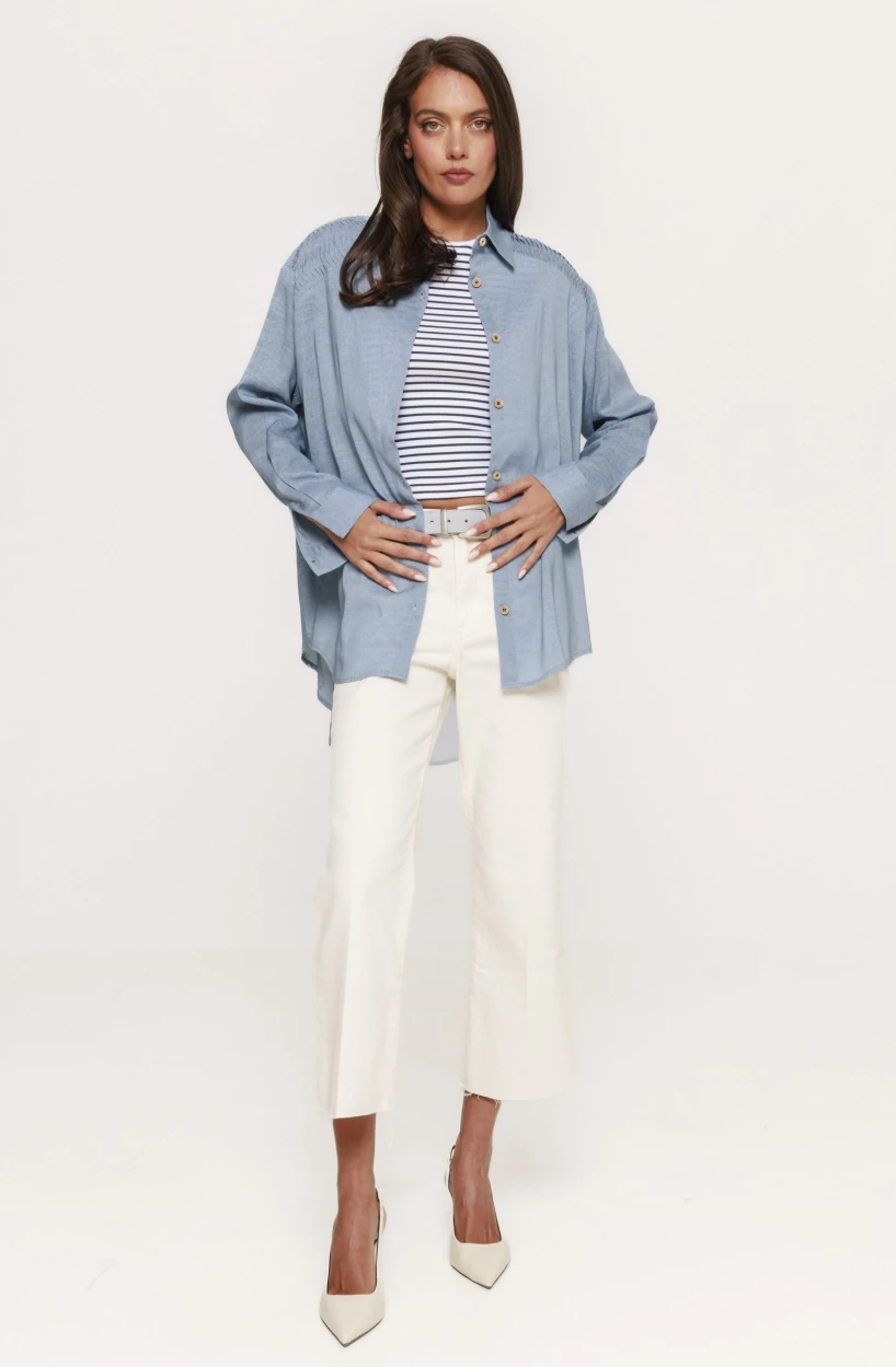 Culoarea și designul cămășii lejere Margot sunt gândite astfel încât să fie ușor de asortat. Nuanțele neutre sau pastelate oferă un plus de rafinament și pot fi combinate cu diverse piese vestimentare, fără efort. Această cămașă devine astfel o bază excelentă pentru construirea unor ținute moderne și echilibrate.