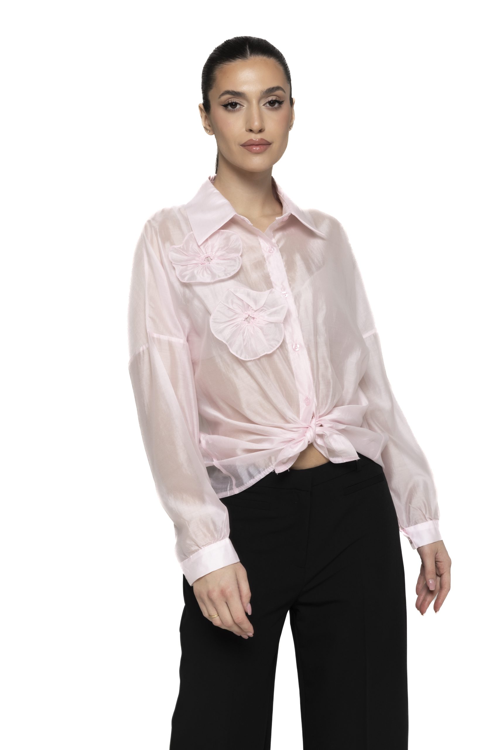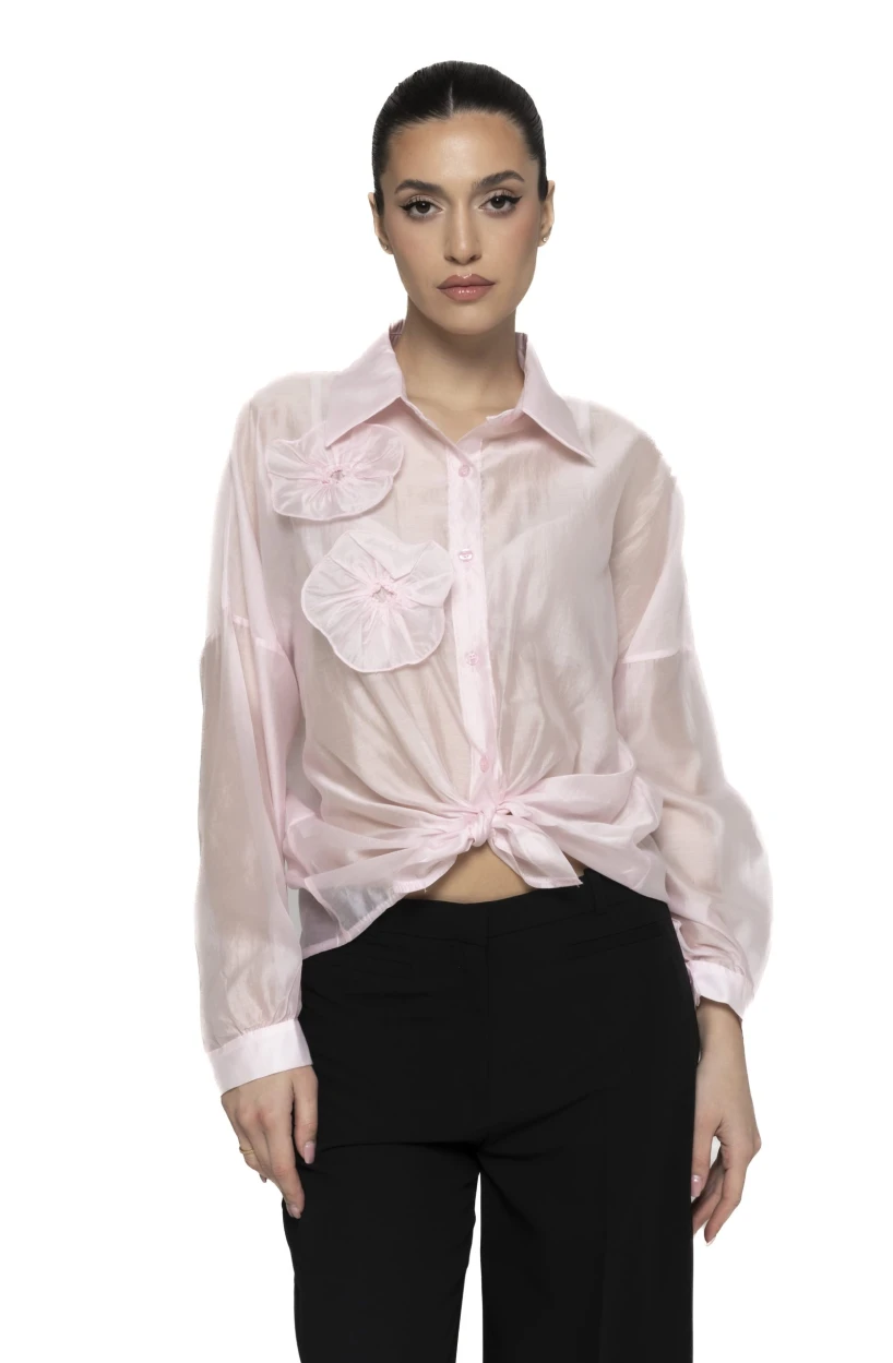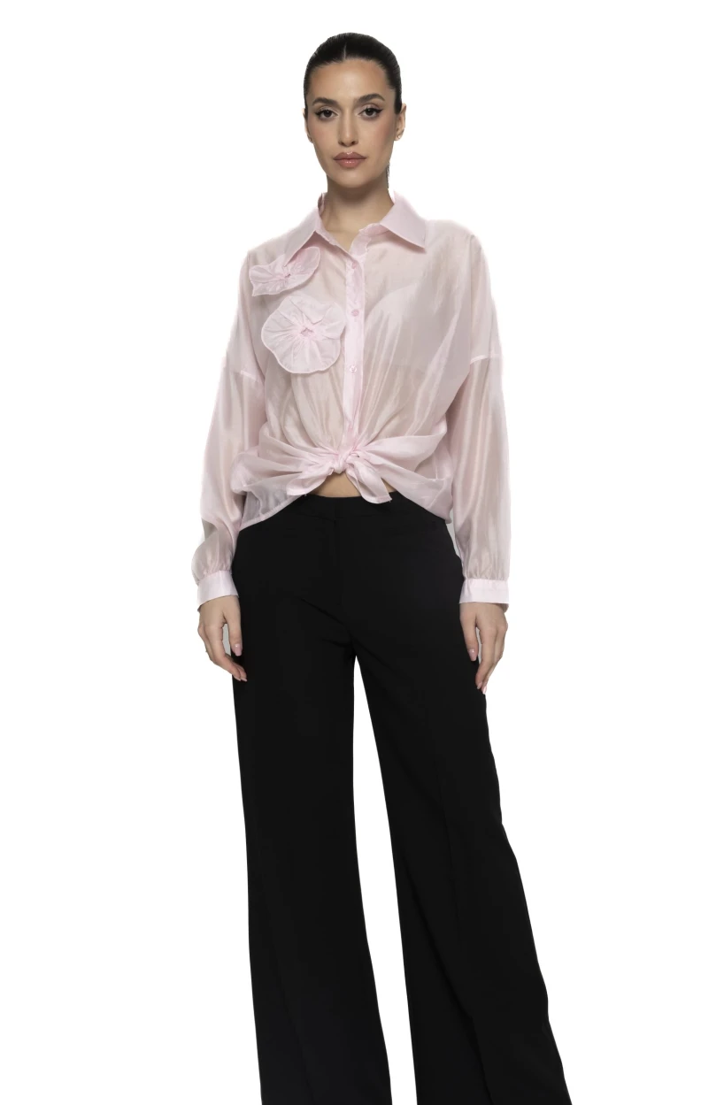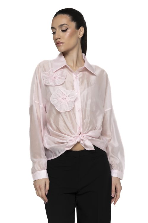 Cămașă satinată cu aplicații flori Irene – rafinament feminin și eleganță delicată