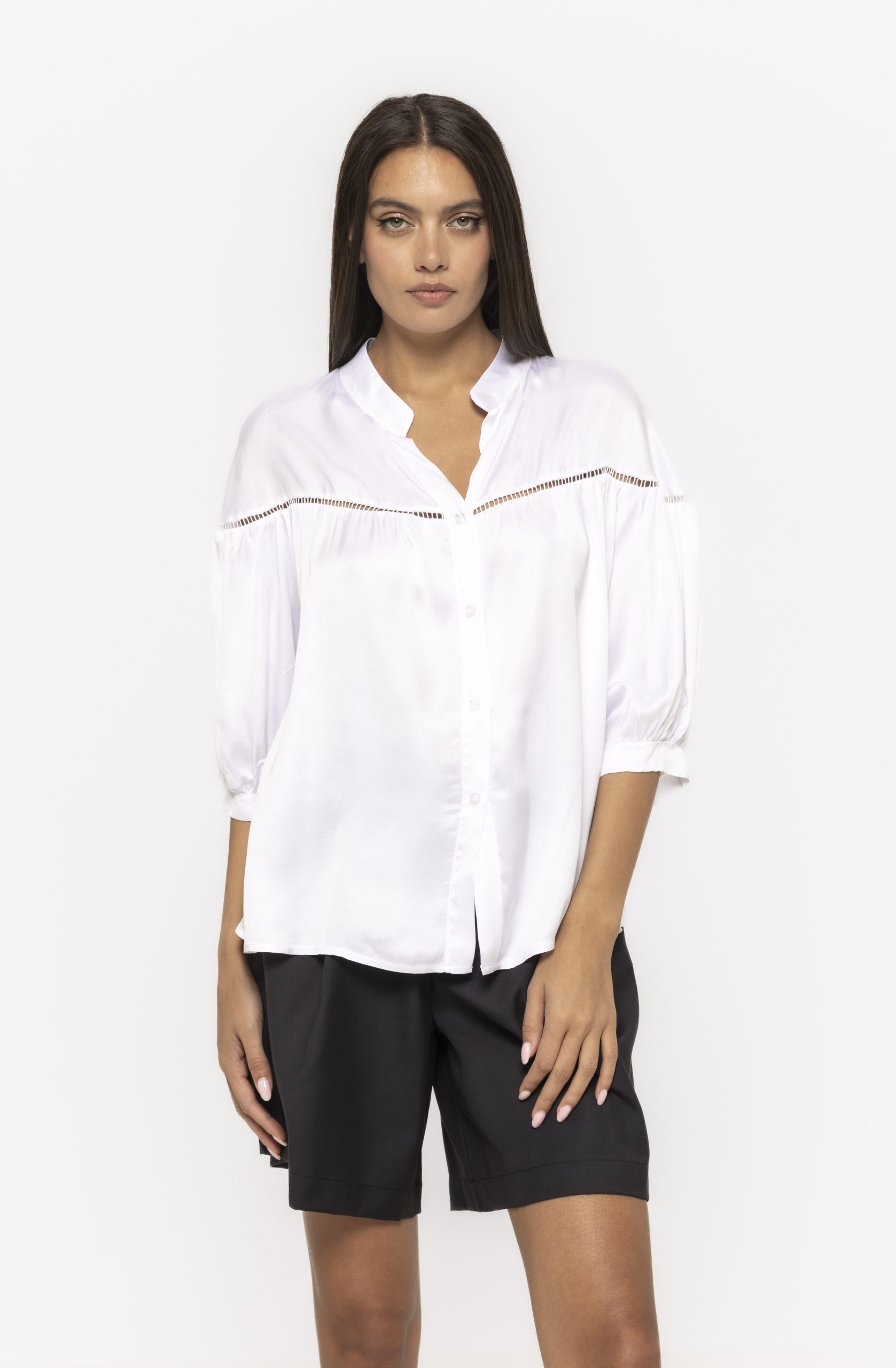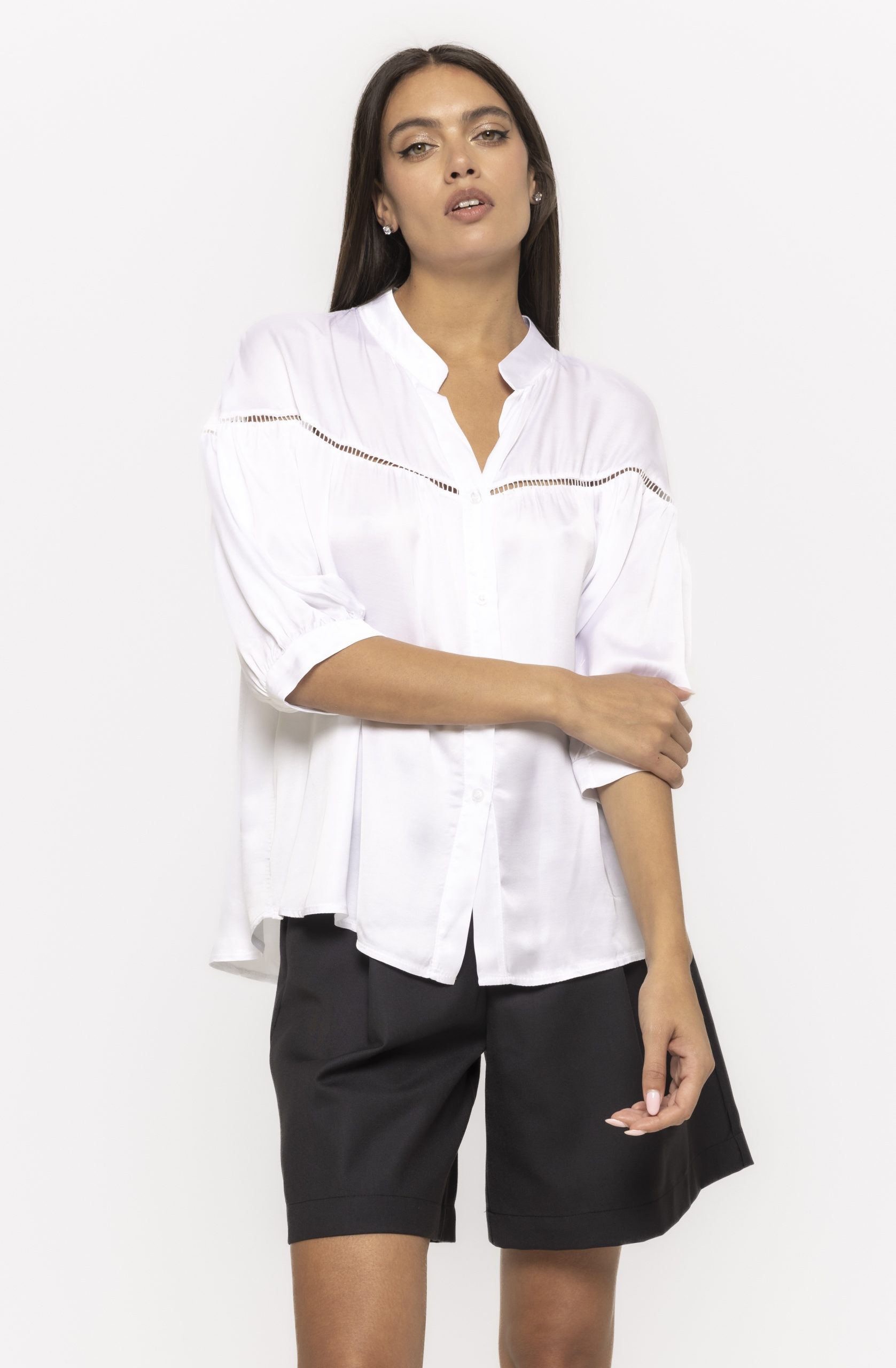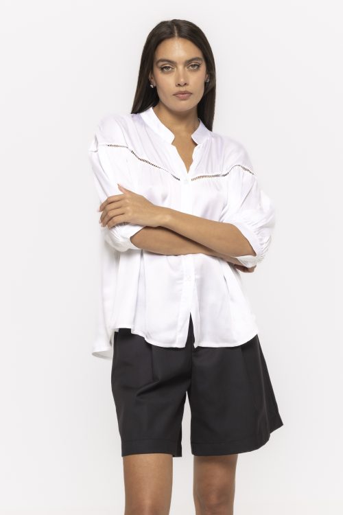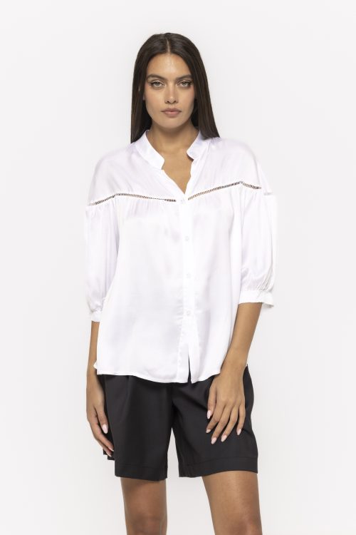Cămașă satinată cu mânecă trei sferturi Kara – eleganță fluidă și rafinament modern