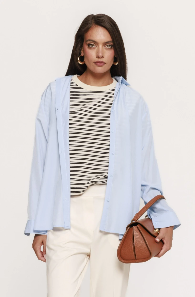 Pentru un plus de impact stilistic, cămașa ușor transparentă Lili poate fi accesorizată în funcție de ocazie, oferindu-ți posibilitatea de a crea ținute variate cu aceeași piesă vestimentară. O poți combina cu bijuterii fine pentru un look delicat și elegant sau poți opta pentru accesorii statement care să aducă un contrast modern și îndrăzneț. De asemenea, alegerea unui top sau body purtat pe dedesubt poate influența întregul outfit, permițându-ți să adaptezi nivelul de transparență în funcție de preferințe.