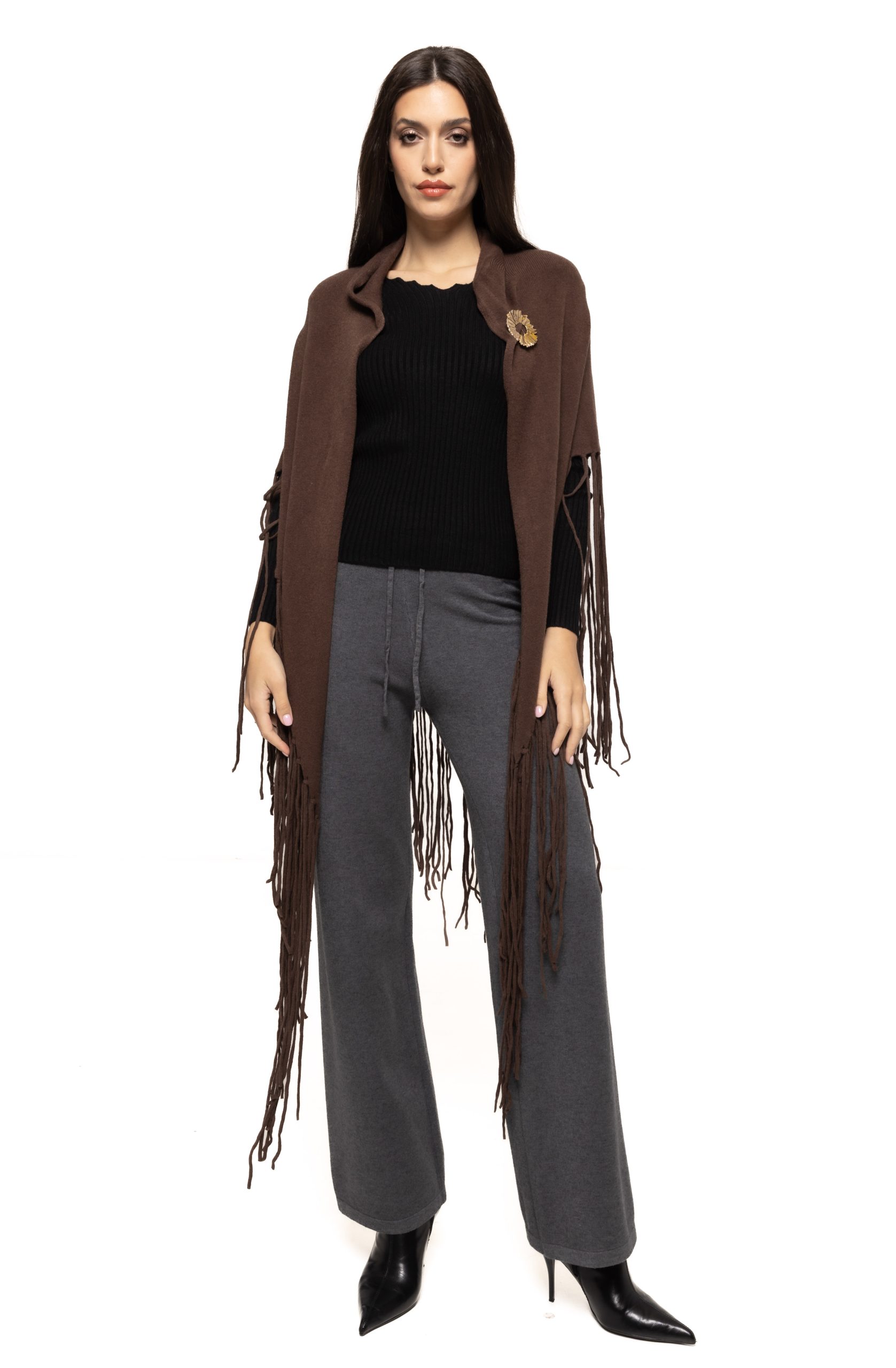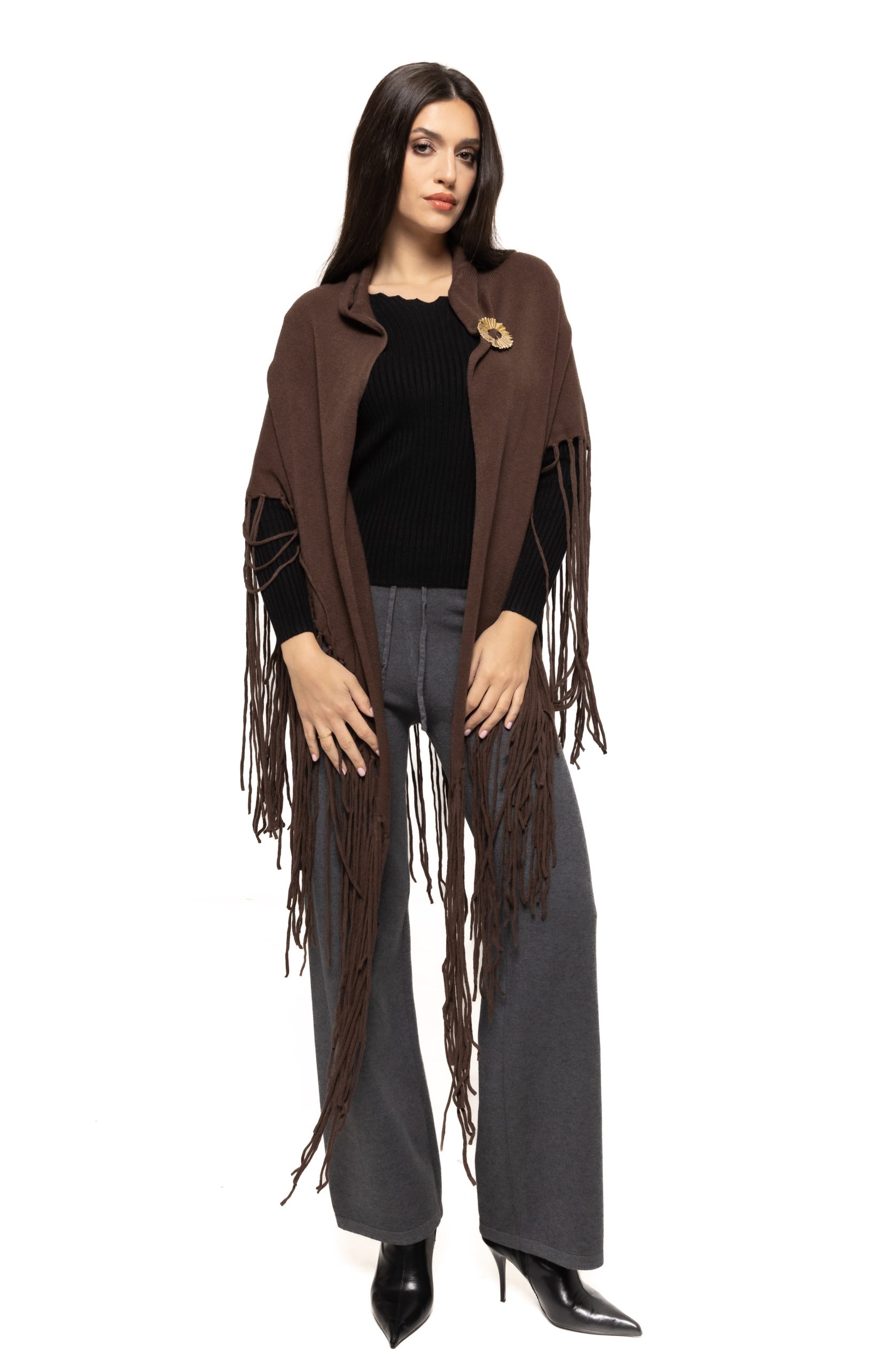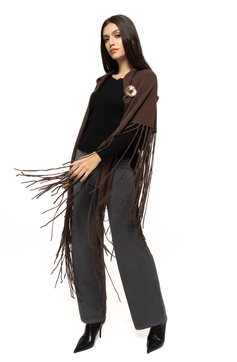 Capa cu broșă Adela poate fi integrată cu ușurință în numeroase combinații vestimentare: