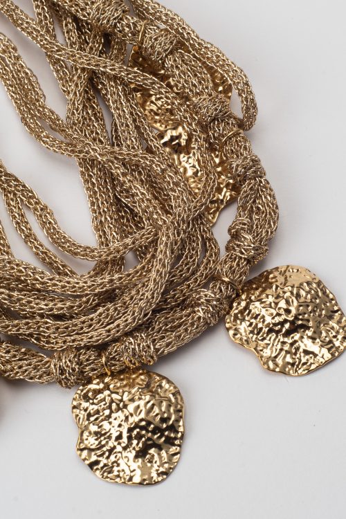 Bănuții care decorează colierul Daisy conferă bijuteriei un aspect unic și jucăuș, fără a compromite eleganța. Fiecare bănuț este lucrat cu atenție la detalii, având finisaje fine și un luciu subtil, care reflectă lumina într-un mod delicat. Aranjamentul aplicelor este gândit pentru a echilibra vizual colierul, astfel încât să devină piesa centrală a ținutei, dar fără a încărca vizual outfitul.