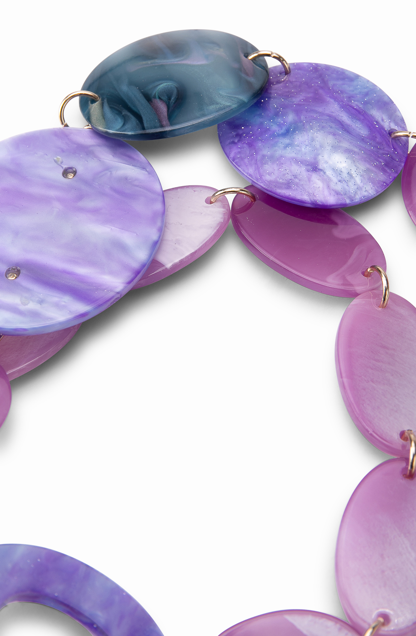 Unul dintre elementele definitorii ale colierului Lina este designul său compus din elemente rotunde decorative. Aceste discuri sunt dispuse armonios de-a lungul colierului, creând un efect vizual elegant și modern. Formele rotunde sunt foarte apreciate în designul accesoriilor deoarece transmit echilibru și rafinament. Aceste elemente oferă colierului un aspect contemporan și îl transformă într-o piesă statement.